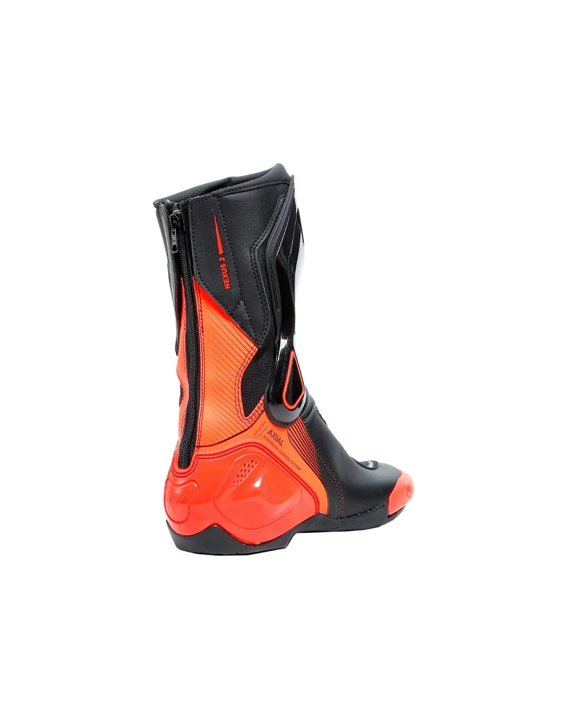 Dainese Nexus 2 Schwarz / Fluo Red Stiefel. Sportstiefel aus Mikrofaser und D-Stone-Gewebe. Dainese Nexus 2 Stiefel bieten ein hohes Maß an Sicherheit und Komfort. Sie verfügen über strategisch platzierte Schutzvorrichtungen und Verstärkungen und verfügen über das Axial Distortion Control-System, das das Risiko eines Umknickens des Fußes verringert und ihn vor Stößen schützt.