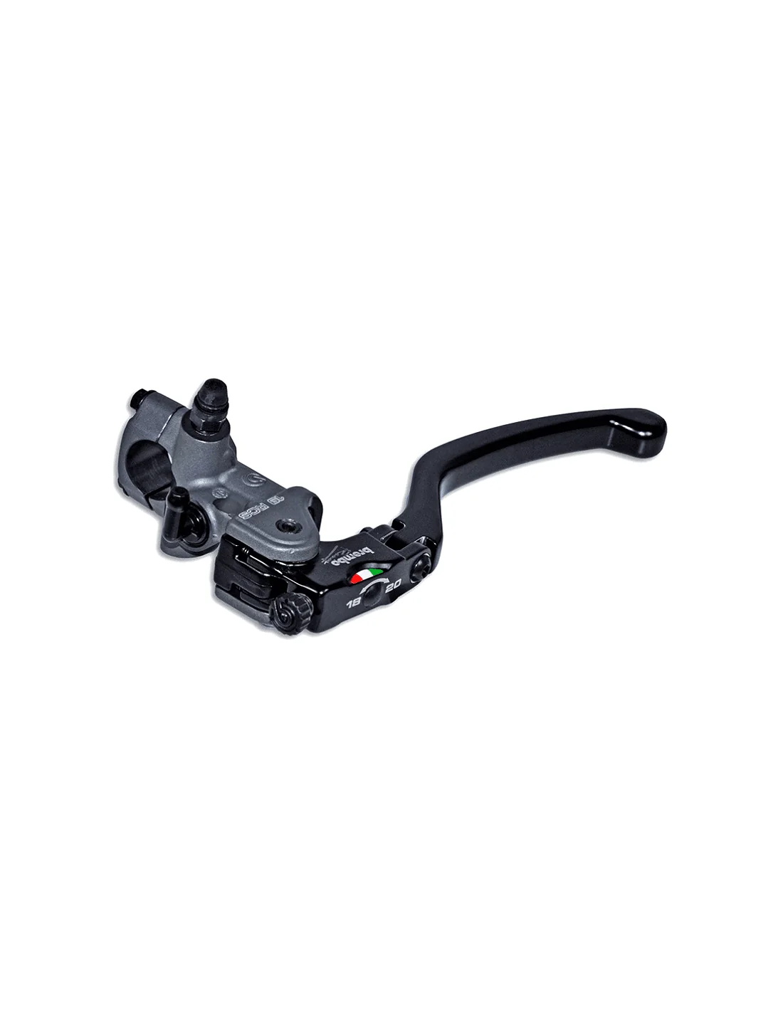 Die Brembo 19 RCS Kupplungsgeberzylinder beinhalten ein innovatives System (Ratio Click System) durch einen einfachen Exzenter am Hebel, der es dem Fahrer ermöglicht, zwischen einem Angriff von 18 und 20 zu wählen lose Berührung. Angezeigt für den Einsatz in allen Arten von Motorrädern mit hydraulischer Kupplung.