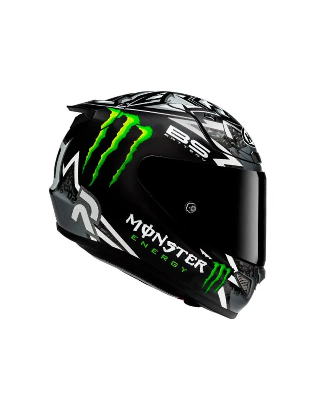 Design finished in glossy black, silver and white, providing a fresh and modern look on the road. It stands out for an elegant silver border that highlights the "El Diablo" logo by Fabio Quartararo, along with the number “20” on the back. Licensed Monster Energy and BS Battery logos on the sides complete the helmet's distinctive style, ideal for lovers of competition and speed.