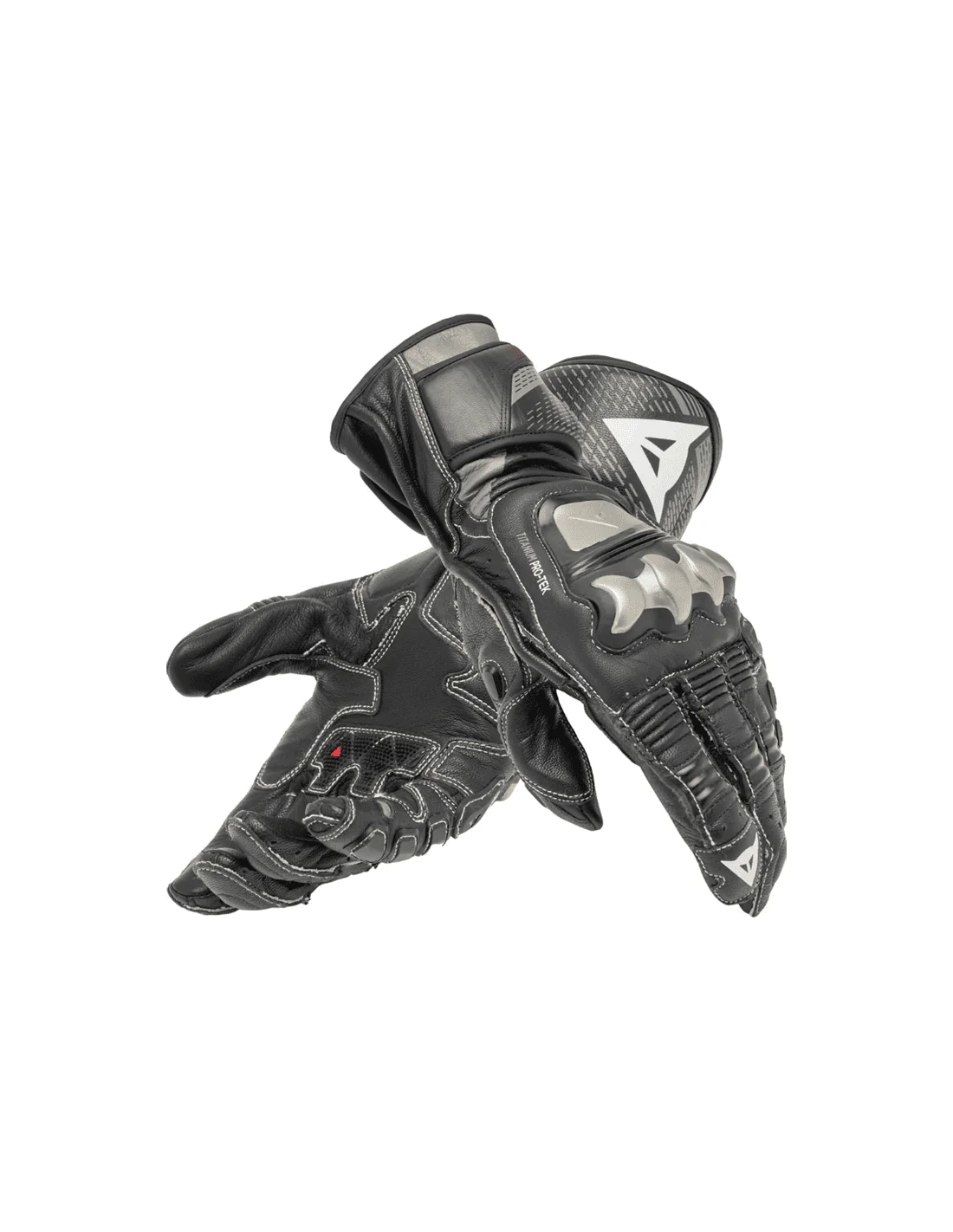 Full Metal 6 ist das höchste Niveau an Technologie und Erfahrung, DAINESE im Wettbewerb auf einen Handschuh angewendet wird, um dem Fahrer das beste Niveau in Bezug auf Sicherheit und Komfort während der Fahrt zu bieten. Hergestellt aus Ziegenhaut mit Verstärkung in der Handfläche, integrieren sie Aramidefaser-Nähte für mehr Haltbarkeit. Sie bieten technische Lösungen an, die sich aus der Untersuchung der Ergonomie und der Untersuchung der kritischsten Punkte im Falle eines Sturzes ergeben. Sie integrieren strategisch gelegene neue elastische Einfügungen und verfügen über neue Carbonfasereinfügungen und Verstärkungen im Faustbereich.