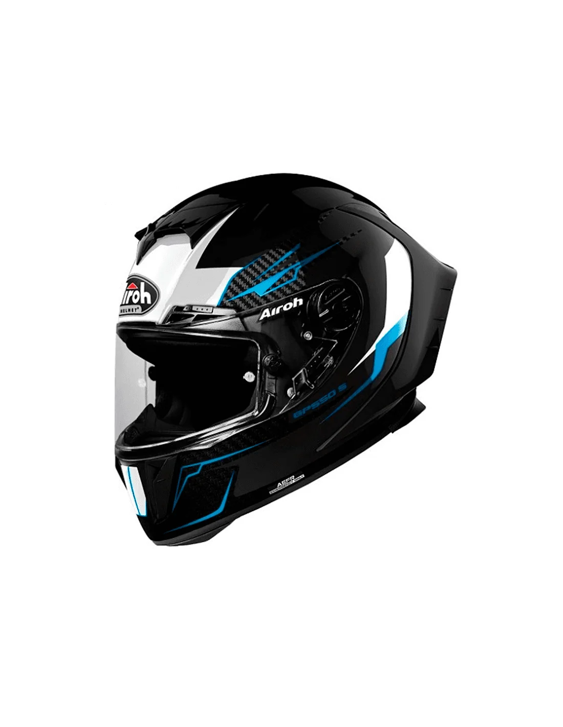 Der neue GP550 S definiert den Leistungsstand auf der Straße und auf der Strecke neu. Es wurde in der Windkanal, von den Piloten getestet und verbessert durch gründliche Kenntnisse der AIROH. GP550 S wird an der Spitze des Racing-Segments platziert, ohne dabei die Komfort- und Praktikabilitätsmerkmale zu übersehen, die für eine intensive Nutzung erforderlich sind. Innovative Heckspoiler erzeugen einen hochgeschwindigkeitsen Unterstützungseffekt (DownForce) und die interne Kanalstruktur ermöglicht eine effiziente Luftabsaugung. Die Ausstattung dieses Spitzenprodukts wird ergänzt durch 3 Messungen verschiedener HPC -Hüllen (High Performance Composite), 2D-Laufbildschirm mit schnell entriegelten Ventilen, 8 Lufteingänge für eine hervorragende Belüftung, pinlock Linse inklusive, tear-off ready, wind-stop und AEFR System (AIROH Emergency Fast Release) um die Polster im Notfall leicht zu entfernen.
