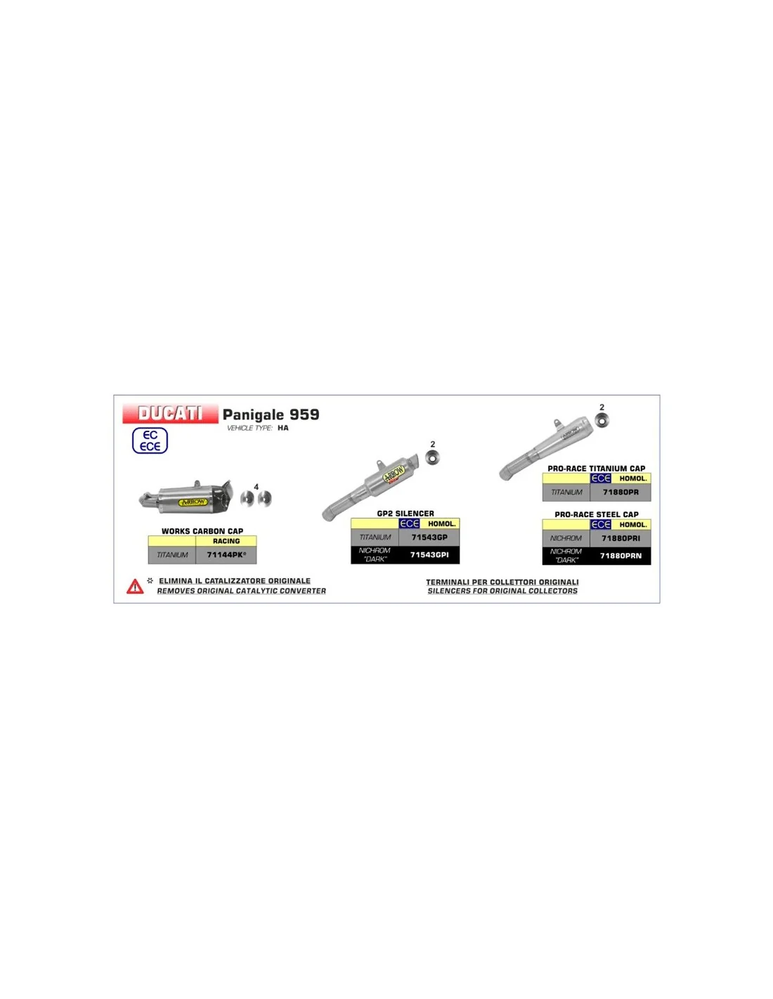 Pista ist der neue Auspuff von Arrow, der für die leistungsstärksten Superbikes entwickelt wurde. Dieser Auspuff hat ein sehr aggressives Design und wurde entwickelt, um dank der Verwendung der besten Technologie zusammen mit den hochwertigsten Komponenten eine hohe Leistung zu bieten. Der Arrow Pista-Schalldämpfer hat einen speziellen Körper aus Titanlegierung, eine Endkappe aus Kohlefaser mit T-Will-Rahmen und ein thermisches Material der neuen Generation im Inneren. Zu seinen Vorteilen zählen eine Gewichtsreduzierung von ca. 25 % gegenüber dem Original-Auspuffschalldämpfer und eine Leistungssteigerung zwischen 3 und 5 % (je nach Modell).