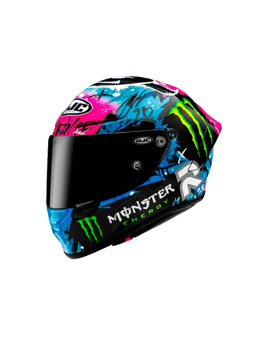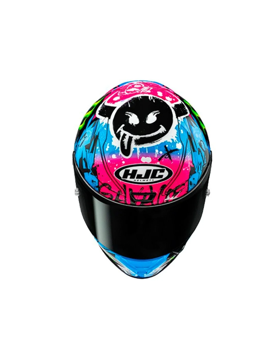 HJC RPHA 1 Red Bull Misano GP MC-21 Helm. Der neue Rennhelm RPHA 1 ist nach dem FIM-Rennreglement (FRHPhe-01) und dem neuen ECE 22.06-Reglement zugelassen. Der RPHA 1 ist das gleiche Modell, das von HJC-Fahrern sowohl in der MotoGP als auch in der WorldSBK verwendet wird. Er verfügt serienmäßig über eine Silvercool-Innenpolsterung, Pinlock 120 und ein effektives, im Windkanal getestetes ACS-Belüftungssystem. Es zeichnet sich durch eine fortschrittliche Aerodynamik und eine hervorragende Schalldämmung aus. Der in der MotoGP entworfene und entwickelte Helm ist jetzt für alle Fahrer erhältlich.