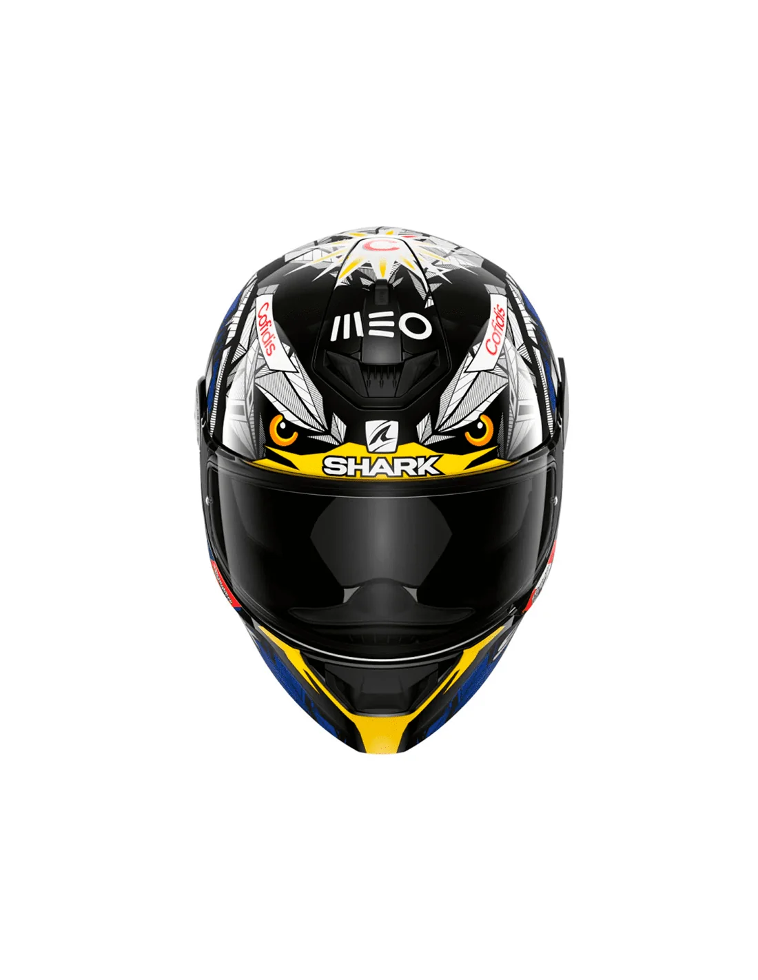SHARK entwickelt seinen Helm sportlicher und verleiht dem neuen Race-R Pro GP die neuesten technologischen Fortschritte. Die Außenhülle aus der COVA-Struktur (Carbon-und Aramid-Struktur) bietet Linien, die die Interferenzen mit dem Wettkampfaffe minimieren. Als Verbesserungen wird der neue Heckspoiler zur Verbesserung der aerodynamischen Leistung und der hohen Geschwindigkeitsstabilität hervorgehoben. Es handelt sich um den High-End-Helm aus SHARK Erfahrung auf höchstem Niveau (motogp und SBK).