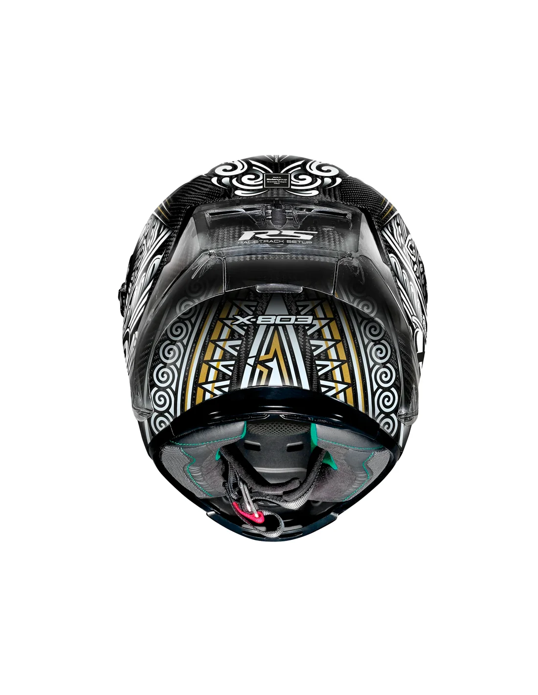 Der neue X-LITE X-803 RS ULTRA CARBON ist eine neue Version des berühmten X-803, aber mehr auf die Rennstrecke ausgerichtet, dank seiner "Racetrack Setup" -Konfiguration, die einen neuen, größeren (abnehmbaren) Hinteren Flügelspieler enthält. Die Schale besteht aus Kohlefaser, sehr leicht und beständig, und hat 3 Rumpfgrößen für eine bessere Passform und kompaktere Größe.