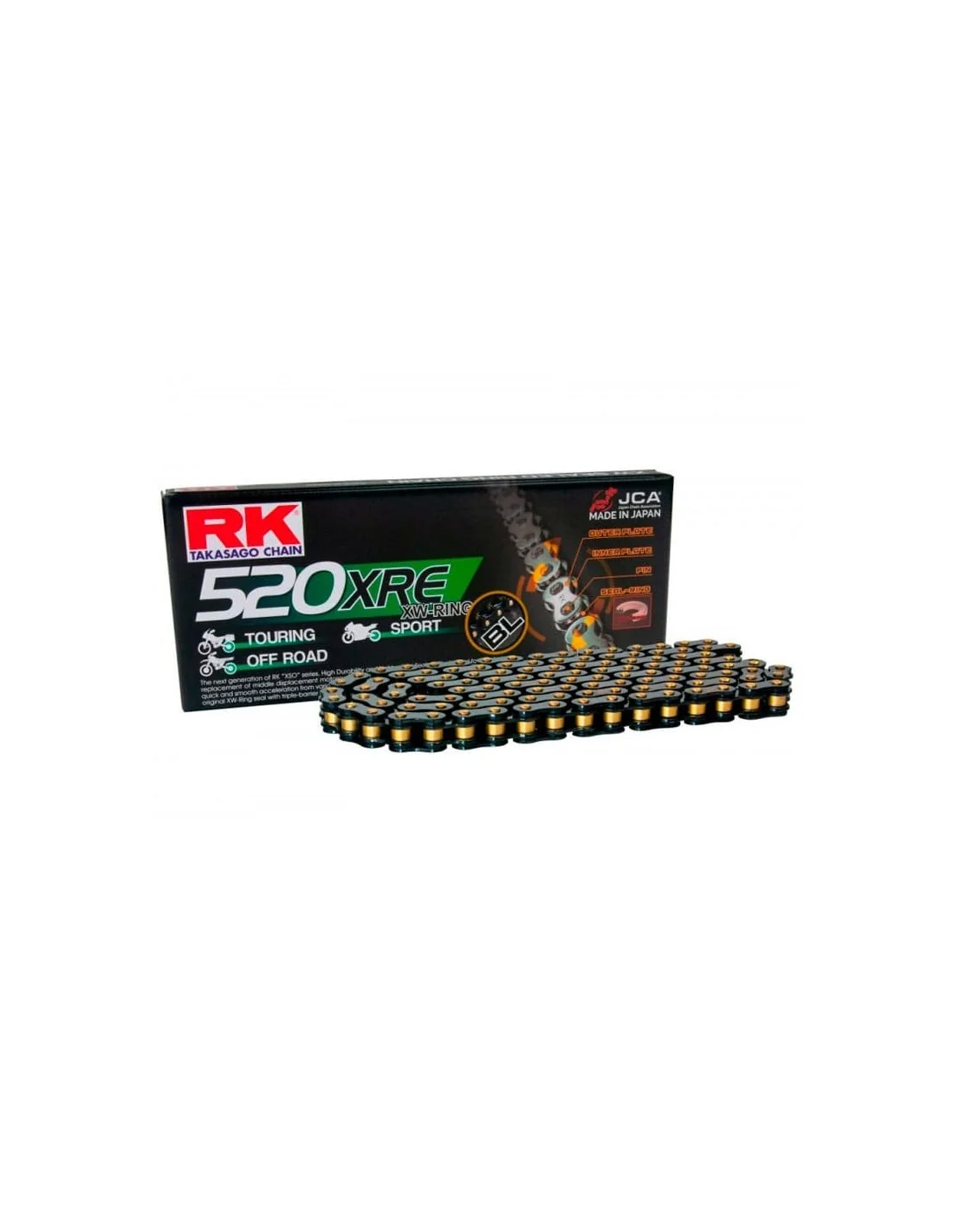 Die ZVMX-Ketten von RK sind das höchste Angebot an Superbike und Roadracing-Ketten, die die beste Leistung bei hoher Geschwindigkeit und extremer Hitze bieten, die für Hochleistungsmotorräder bestimmt sind. Der Hersteller ist offizieller Sponsor des Moto GP HRC-Teams