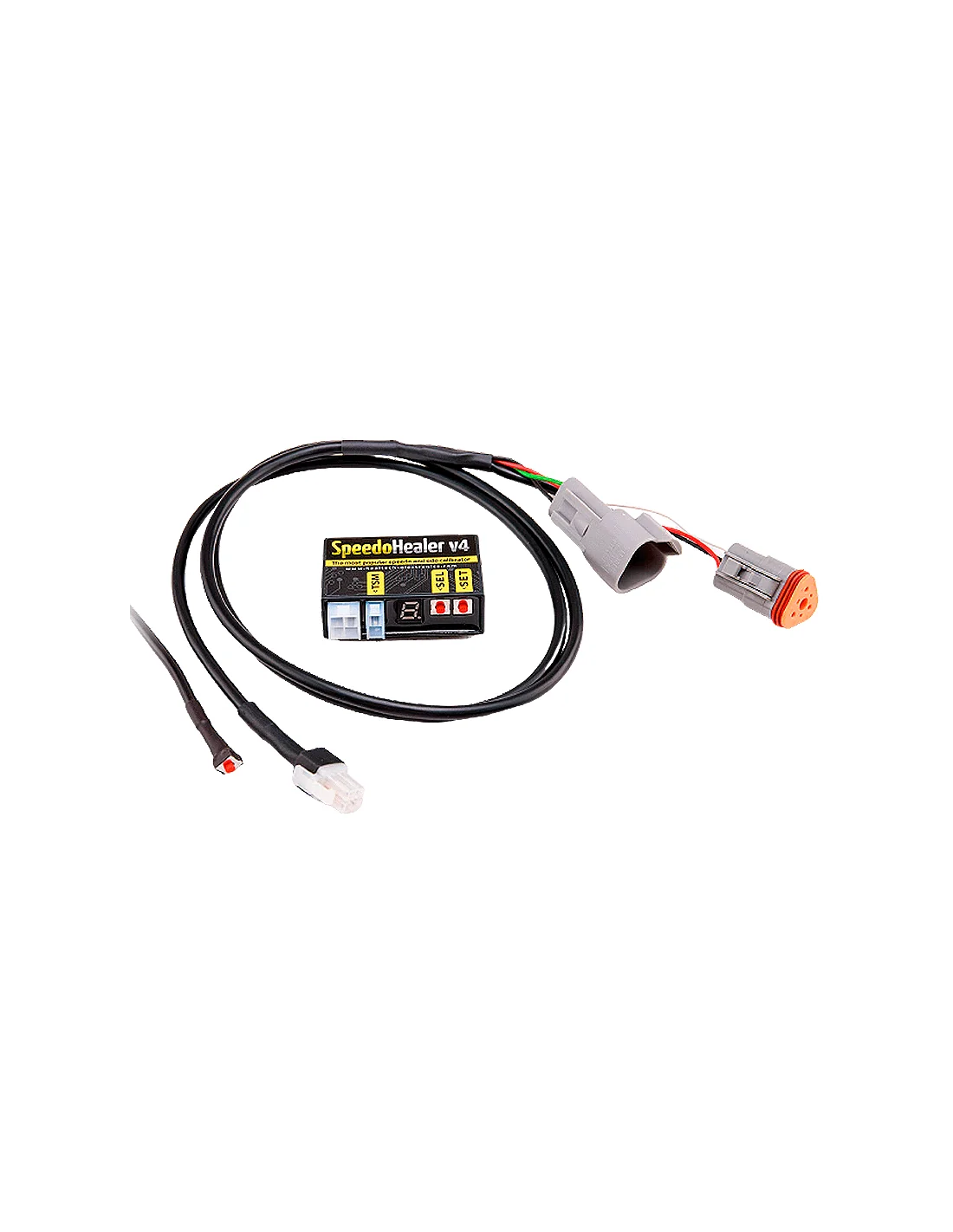 Der Geschwindigkeitsmesser ist HEALTECH Speedo Healer V4 ein bequemer, kostengünstiger und einfacher Weg, um den Tacho und den Kilometerzähler zu korrigieren. Kompatibel mit allen Motorrädern mit elektronischen Tacho. Egal, wie groß die Felge oder die Krone und das Ritzel mit dem Speedo Healer HEALTECH sie echte Lesungen erhalten, um Ihre Geschwindigkeit und Ihre Kilometer in einer korrekten Weise zu messen. Dies dient Nicht nur Ihnen, sondern auch Ihrem Motorrad, die richtige Kilometerleistung zu zählen hilft Ihnen, die richtigen Wartungen zu erledigen und einen wert auf dem echten Motorrad im Falle des Verkaufs zu halten.
