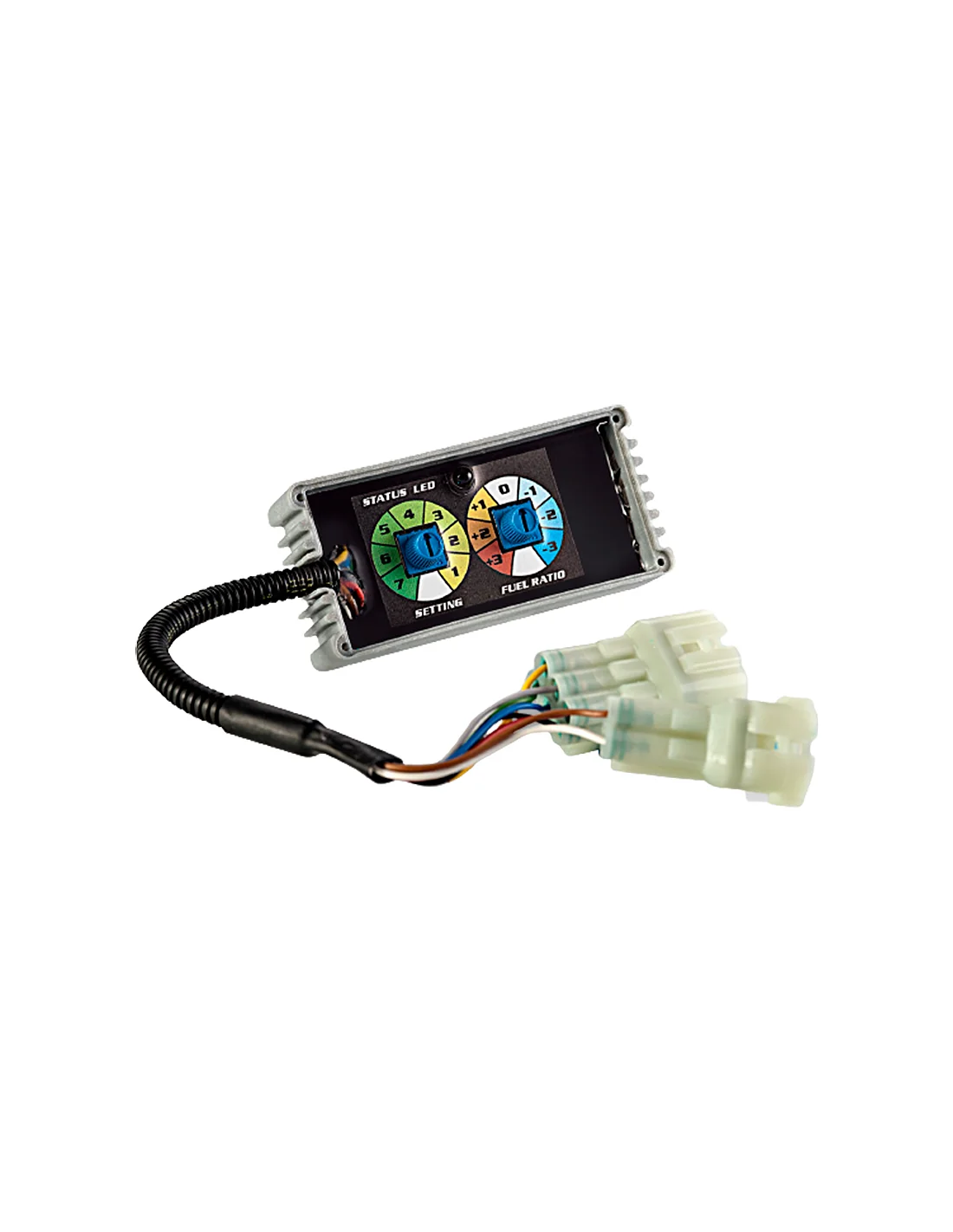 Die Hauptfunktion dieses Steuergeräts besteht darin, das Luft-Benzin-Gemisch über eine Pug&Play-Verbindung zu regulieren, dank seines spezifischen Steckers für jedes Modell. Dieses Steuergerät wird empfohlen, wenn wir den Originalauspuff durch einen anderen ersetzen, um seine Leistung zu verbessern und Explosionen zu vermeiden, die durch ein falsches Luft-Benzin-Gemisch verursacht werden.