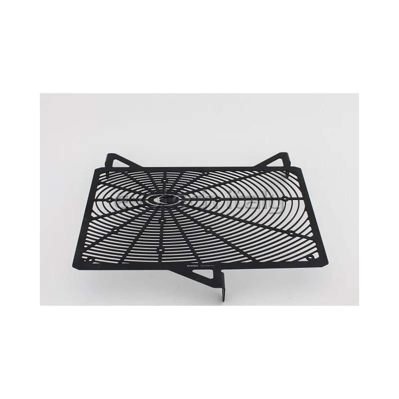 Kühlerschutz aus lasergeschnittenem Aluminium, mattschwarz eloxiert und lasersiebbedruckt.
