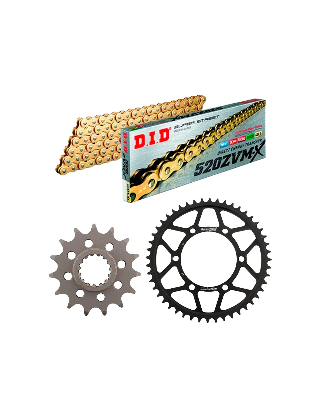 Die Getriebesätze bestehen aus einer DID-Kette eines japanischen Herstellers, die MOTO GP, SBK, MotoAmerica und Händlerteams auf der ganzen Welt beliefert. SUPERSPROX-Krone und -Ritzel sind auch in verschiedenen Meisterschaften wie SBK und Serienmotorrädern vertreten.