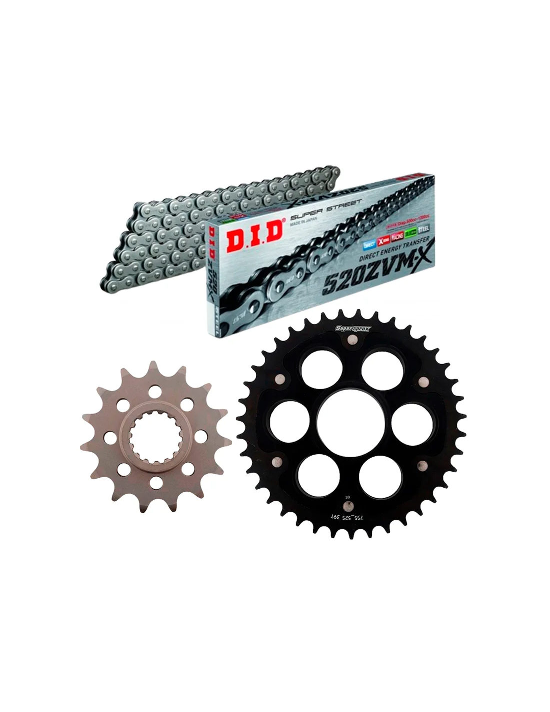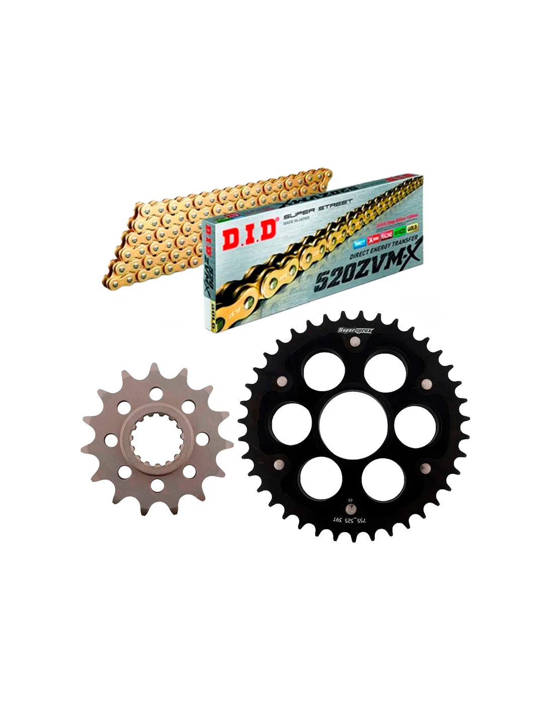 Die Getriebesätze bestehen aus einer DID-Kette eines japanischen Herstellers, die MOTO GP, SBK, MotoAmerica und Händlerteams auf der ganzen Welt beliefert. SUPERSPROX-Krone und -Ritzel sind auch in verschiedenen Meisterschaften wie SBK und Serienmotorrädern vertreten.