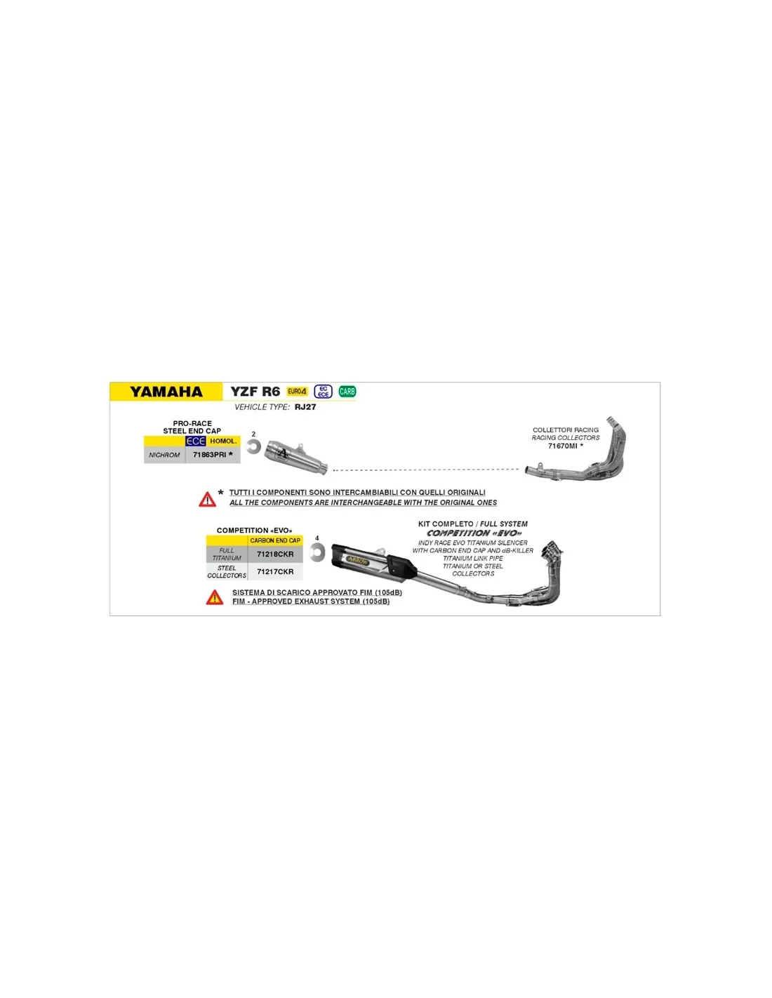 Komplette ARROW Indy Race 71218CKR Titan-Auspuffleitung mit Titan-Krümmern für YAMAHA YZF 600 R6 17-24