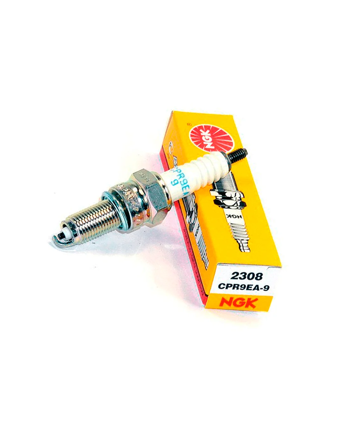 Zündkerze für NGK-Motorrad Modell CPR9EA9 mit Wärmegrad 9 und Standardanschluss, ideal zum Austausch von Original-Zündkerzen.