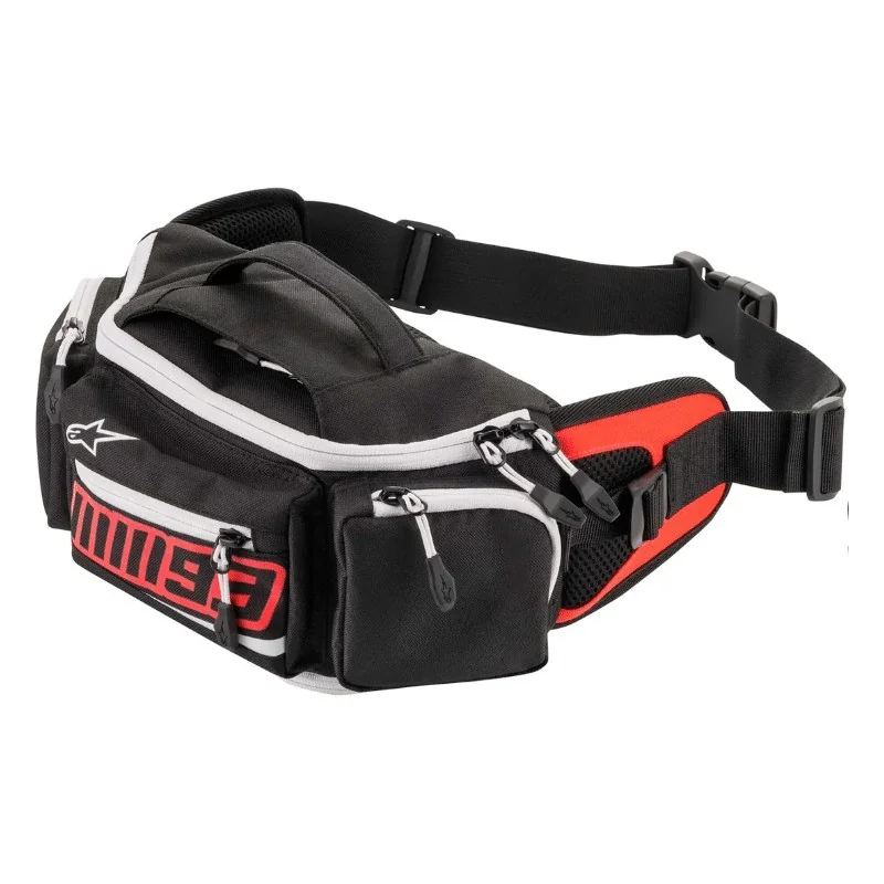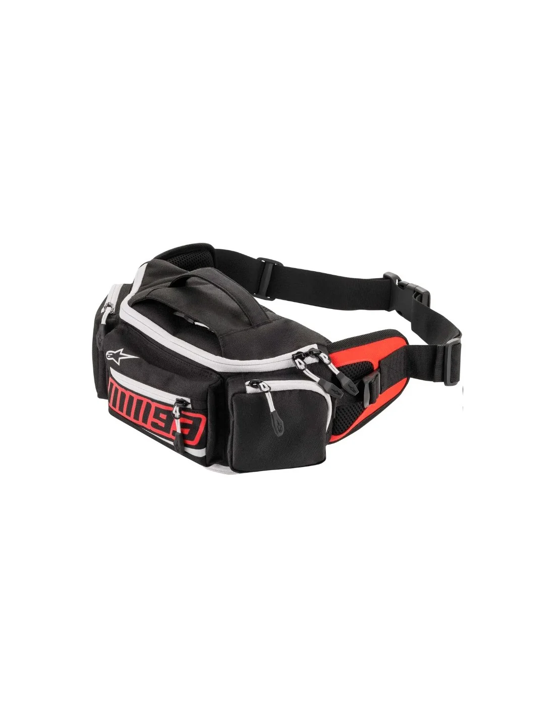 Riñonera Alpinestars MM93 Negra / Roja (colección MM93). Riñonera con múltiples compartimientos fabricada en material duradero y resistente. Ideal para almacenar accesorios indispensables.