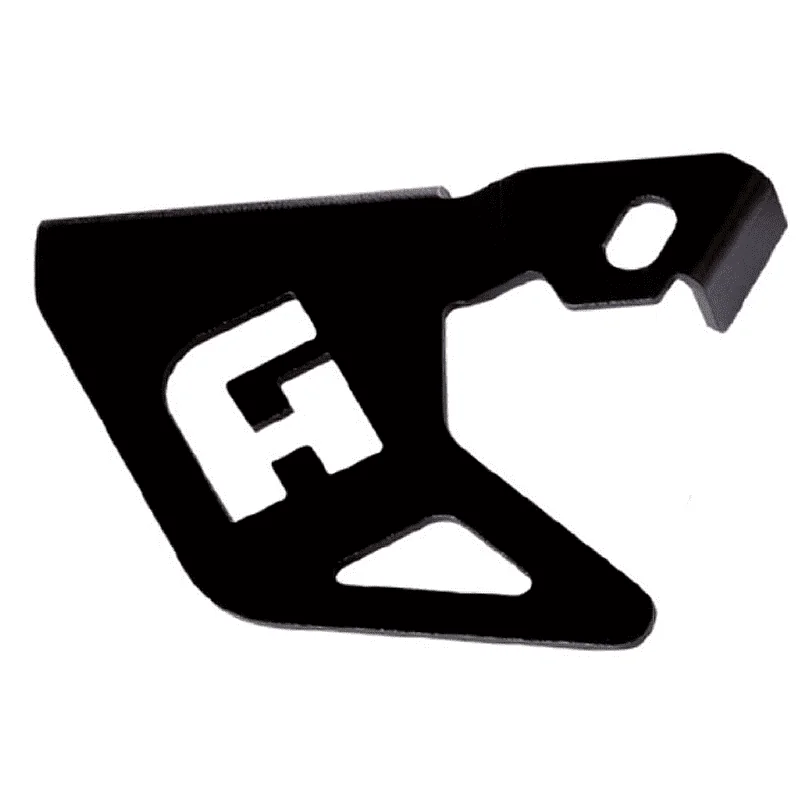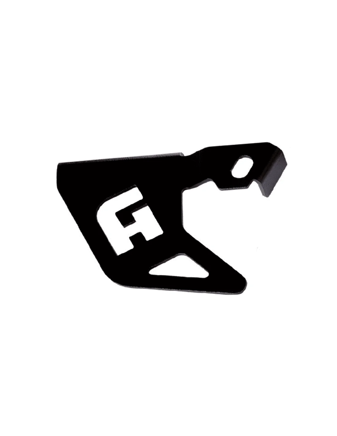 Aleta de tiburón protector de corona fabricada en aluminio. Solo disponible en color negro. La instalación es simple, se sujeta directamente al tornillo del basculante donde se coloca el diábolo. M8-M10