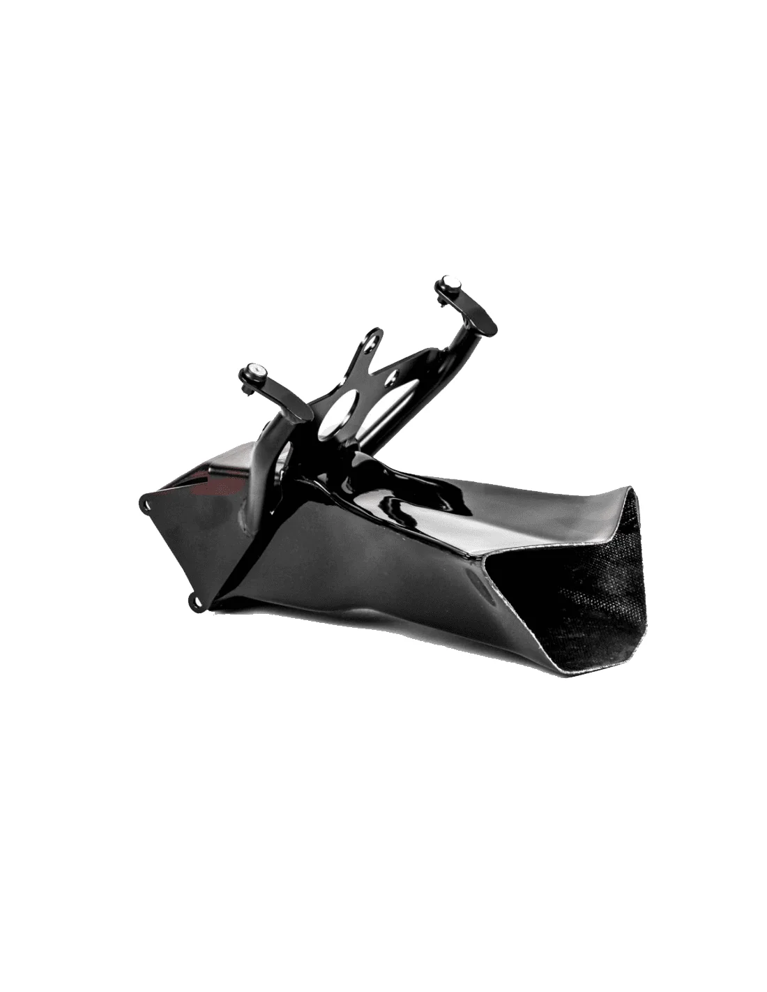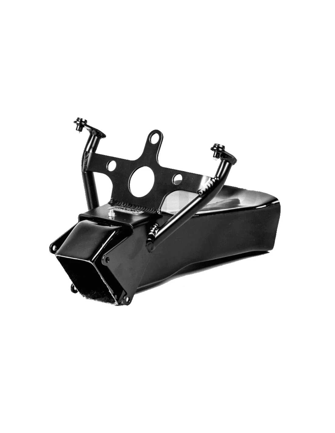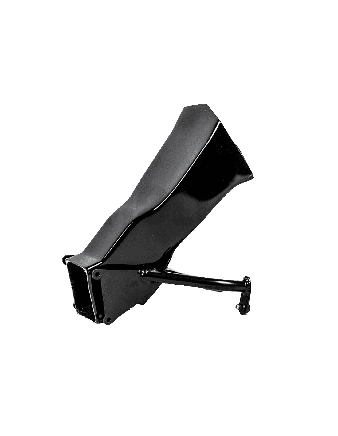 Soporte fabricado en en aleación de aluminio de alta calidad con un acabado pintado en polvo negro, le permitirá ahorrar peso manteniendo las mismas dimensiones que el marco original. (Incluye Ram Air de fibra de vidrio con refuerzo de kevlar)