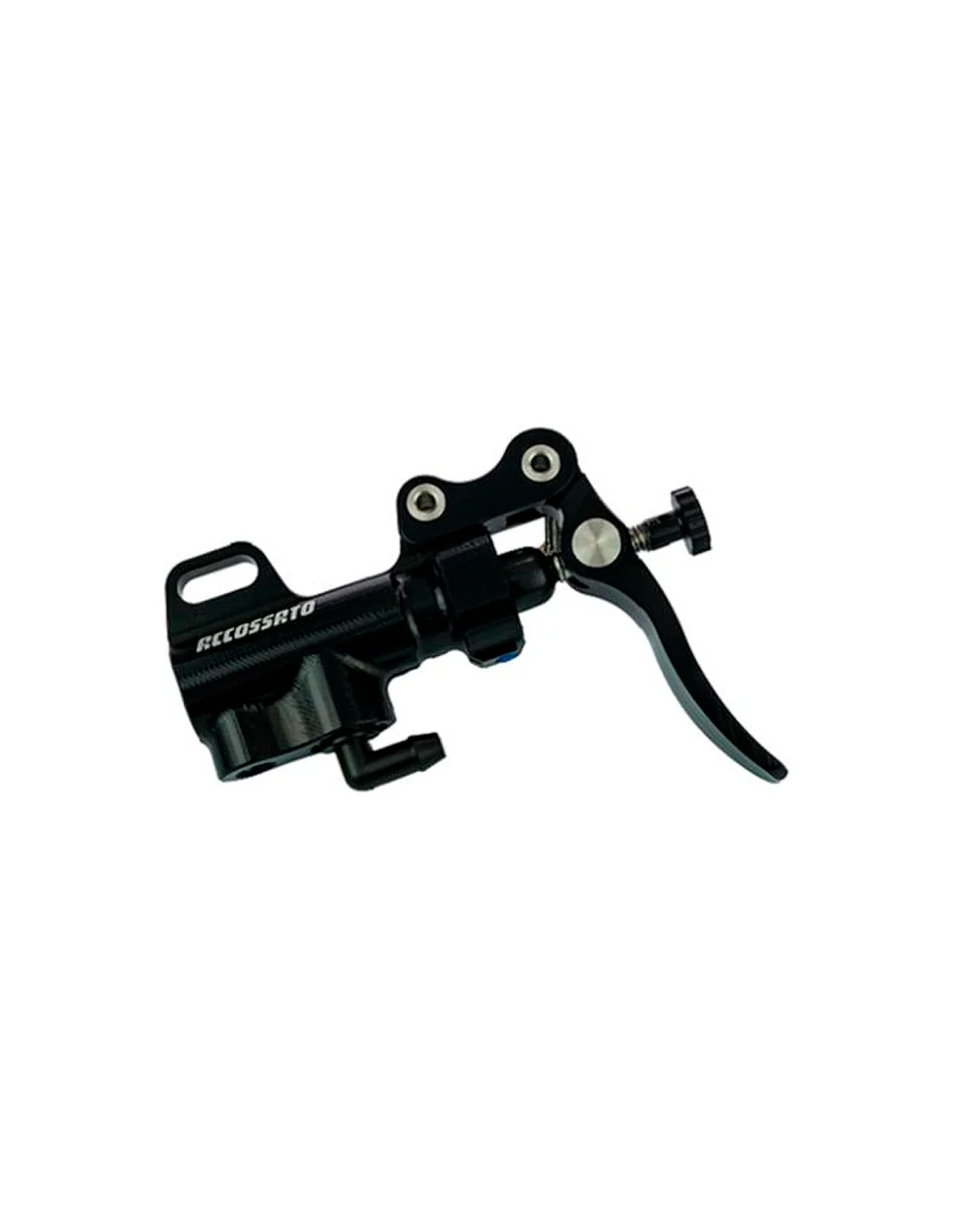 La bomba de freno de pulgar trasero Accossato para motocicletas está hecha de aluminio CNC con un tratamiento de superficie de oxidación dura negra. El diámetro del pistón es de 10,5 mm.