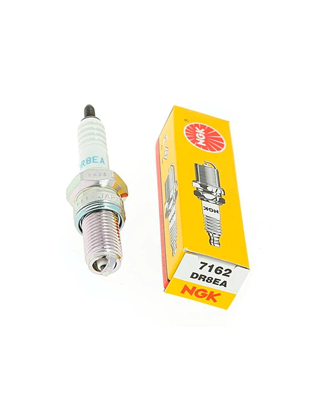 Bujia de encendido NGK modelo DR8EA con cuello largo y grado termico 8, bujia de sustitución para equipos originales. Las bujias NGK forman parte tanto del recambio original presente en multitud de motos del mercado tanto como recambio de sustitución para muchas de ellas, si no sabes que bujia equipa tu moto puedes acceder al buscador de aplicaciones que la propia marca nos ofrece e introducir tu modelo de moto.