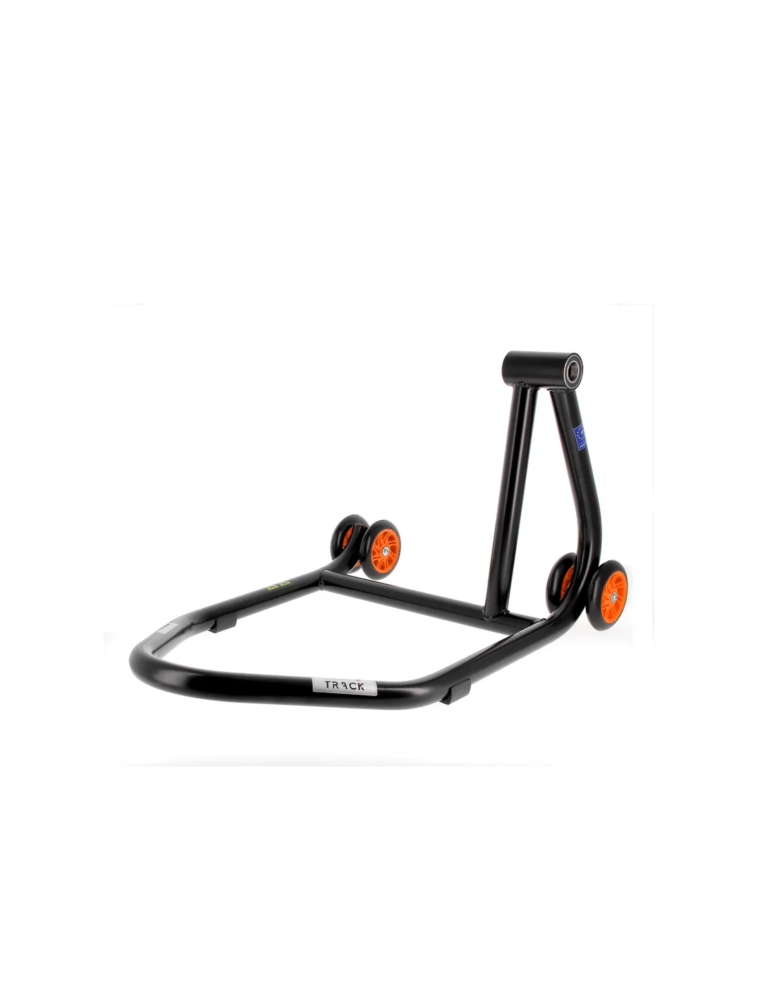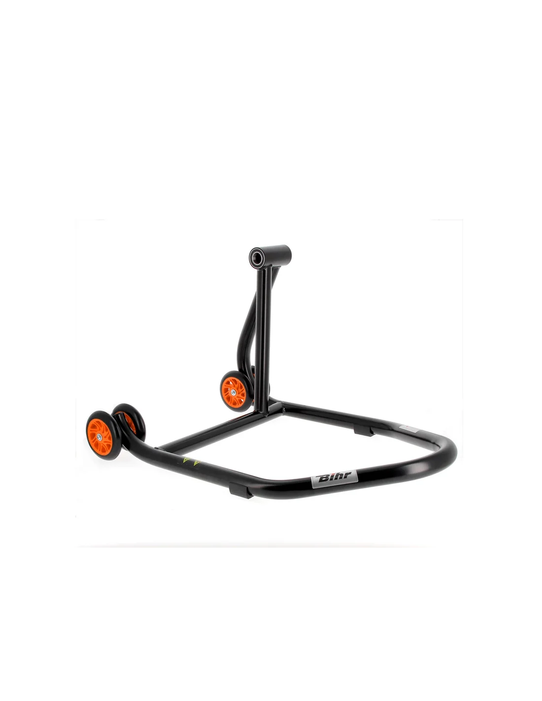 Caballete monobrazo derecho BIHR Home Track color negro mate y ruedas naranjas. REF 3032150