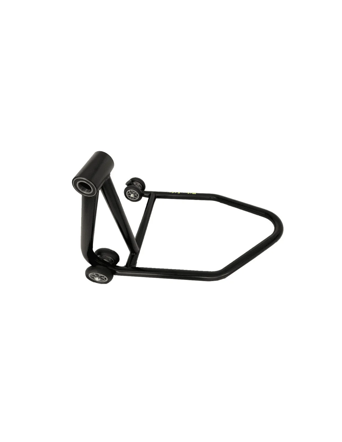 Caballete trasero para motos monobrazo, fabricado con tubo de 35 mm de diámetro y 2 mm de espesor, completamente recubierto de polvo de poliéster.