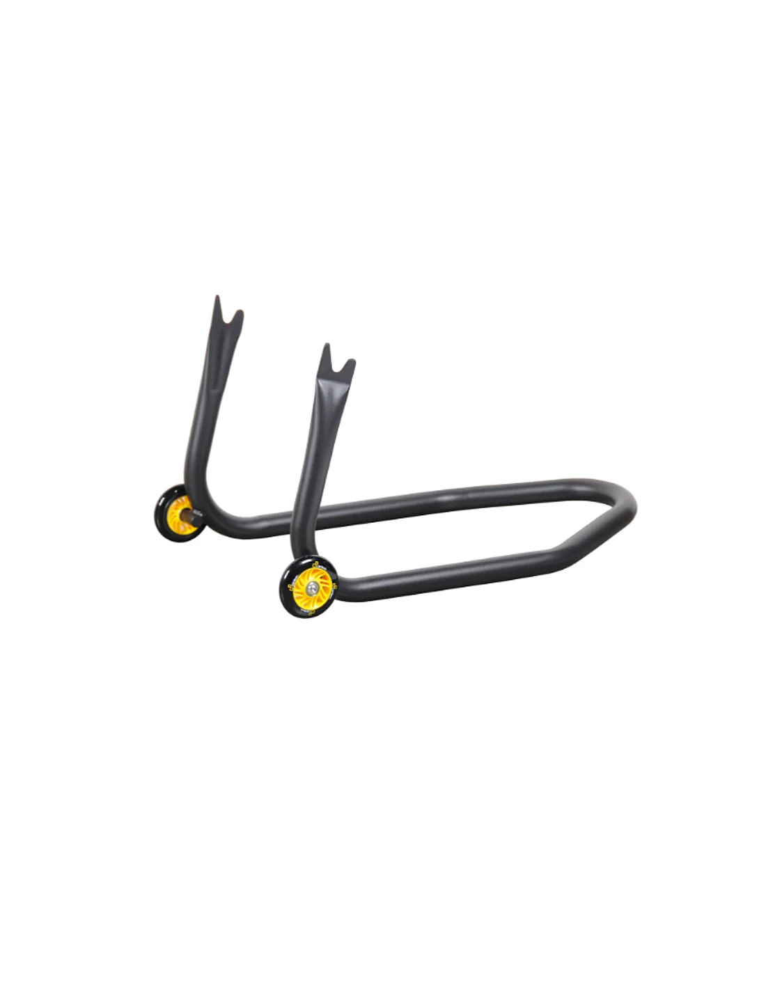 Caballete trasero universal Lightech con soporte de horquilla integrado (diábolo) para el basculante. Está fabricado de hierro en color negro. Su peso ligero lo hace perfecto para revisiones en casa o en pista. Son utilizadas por los equipos más importantes del Campeonato del Mundo y del World SBK.