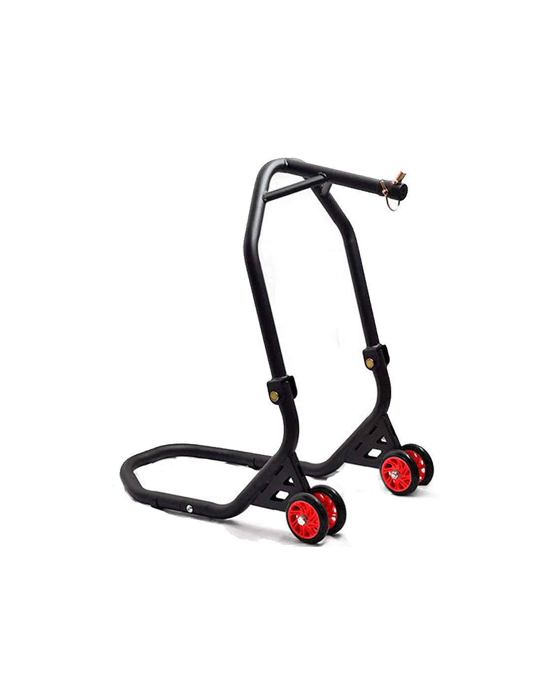 Caballete delantero a Tija JMP color negro y desmontable. Versión muy estable para sujeción en la parte de abajo de la tija inferior, permitiendo realizar fácilmente, funciones de mantenimiento como: