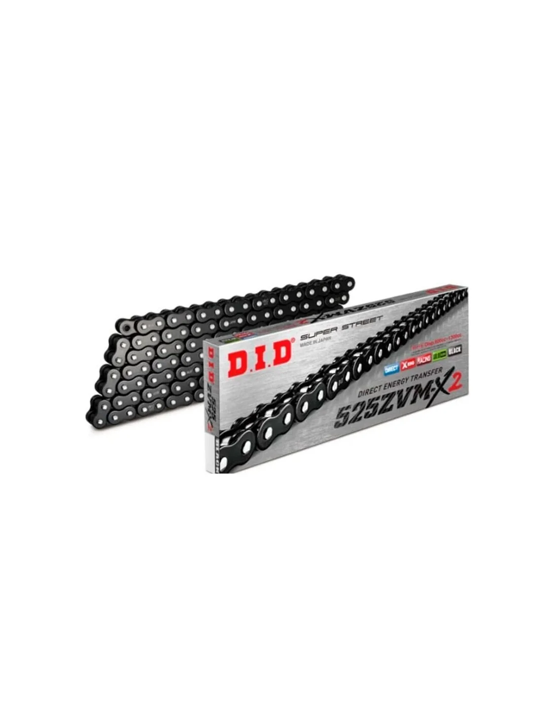 La serie ZVM-X2 de DID es la nueva versión mejorada de cadena ZVM-X tiene mayor resistencia que la serie VX y está diseñada para motocicletas de peso pesado con tremenda torsión y potencia.