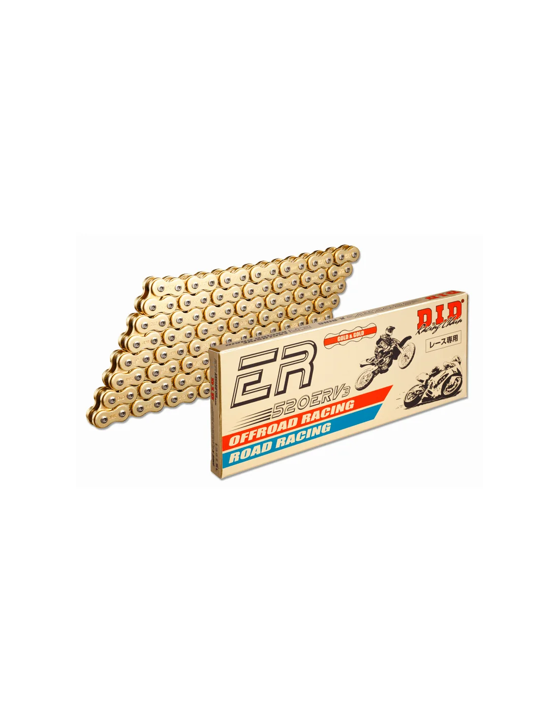 La serie 520ERV3 de DID fue especialmente desarrollado para carreras y, a pesar de los sellos de anillo X, se caracteriza por un peso particularmente bajo de solo 15.00 g / enlace.