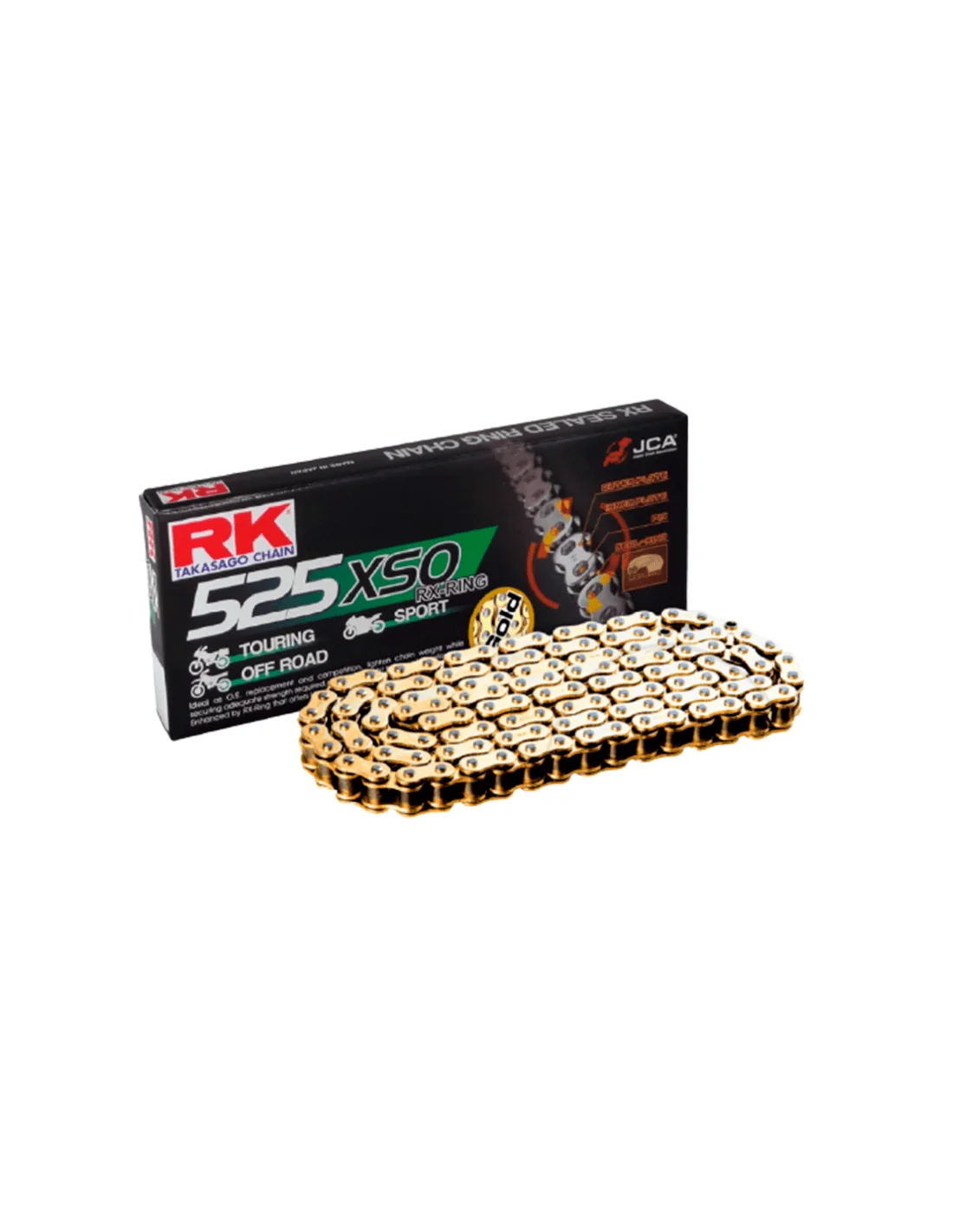 Las cadenas XSO de RK son la gama más alta de cadenas Superbike y Roadracing, ofreciendo el mejor rendimiento a alta velocidad y con calor extremo, destinada a motos de carretera de altas prestaciones. El fabricante es sponsor oficial del equipo HRC de Moto GP