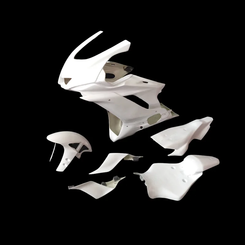 Carenado de competición para Yamaha YZF R6 17-20, fabricados en fibra de vidrio en color blanco, con refuerzos de carbono - kevlar en la zona de la tornillería. Compuesto por frontal, laterales, quilla, guardabarros delantero, colín, semi carcasa de depósito y pase de ruedas. LEER DESCRIPCIÓN