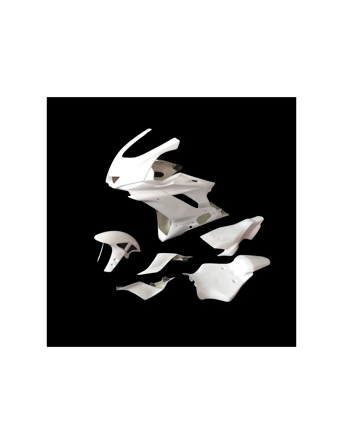 Todos nuestros carenados disponen de despiece de forma independiente, (frontal, quilla, guardabarros delantero, colín, base de colín, cubre depósito y pase de rueda), por lo que no tendrás problemas en caso de caída y no poder repararlo.