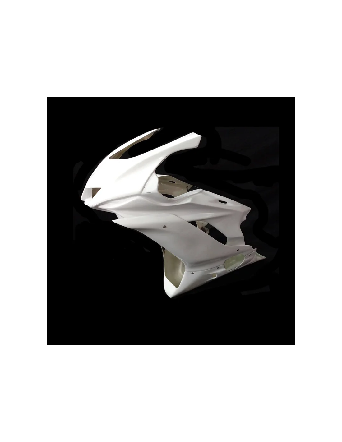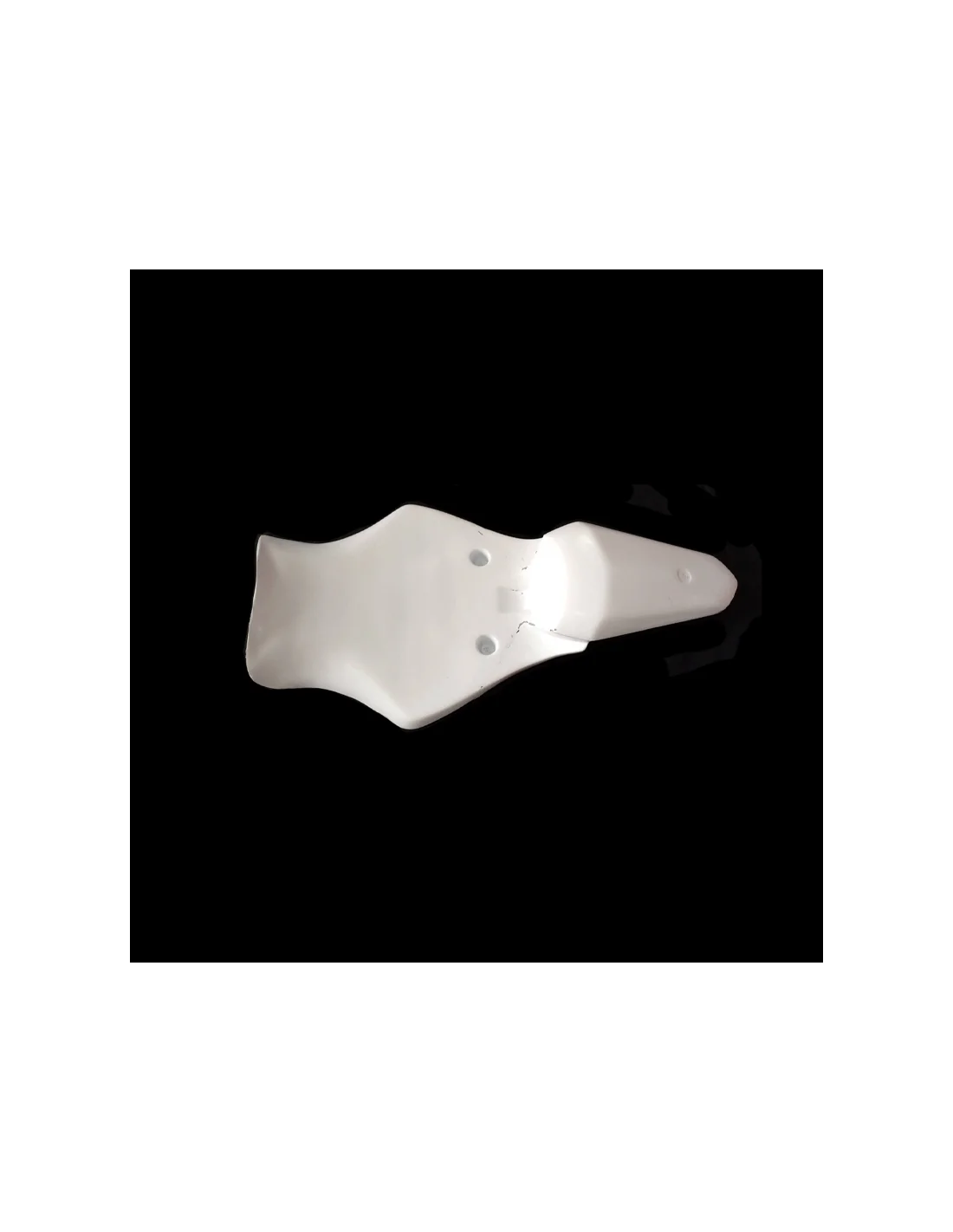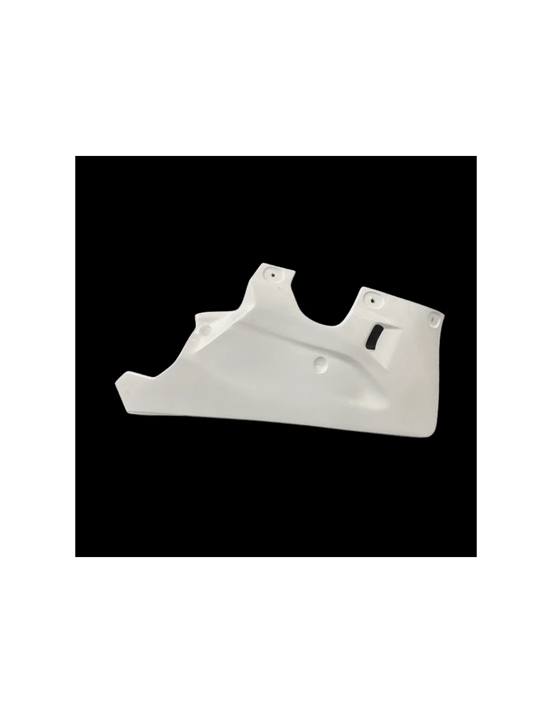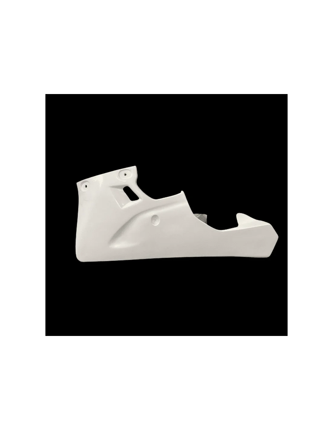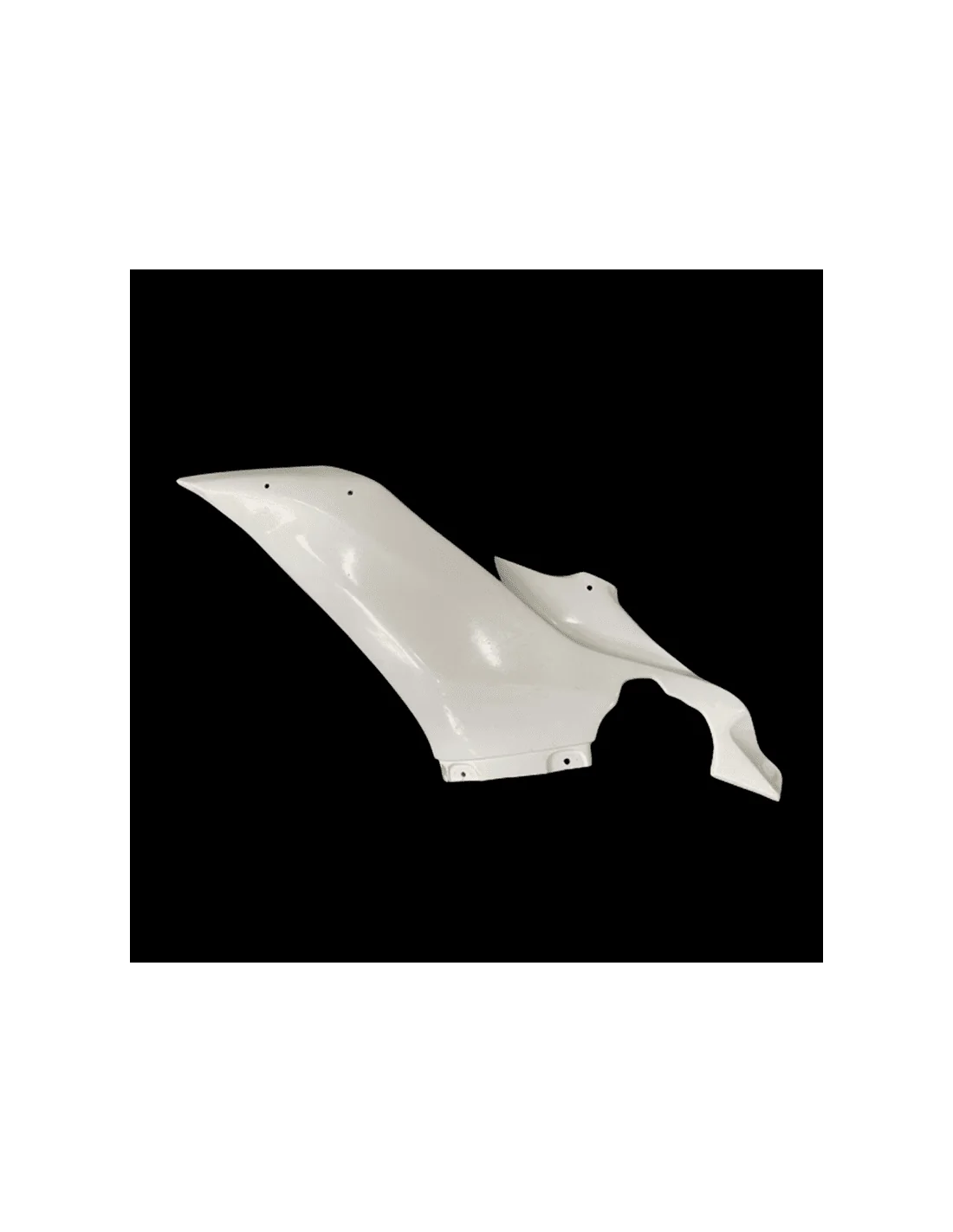 Fabricado en fibra de vidrio en color blanco. La zona de la tornillería va pre-marcada, lista para agujerear y reforzada con carbono - kevlar. Este refuerzo evita las roturas en las zonas más críticas del carenado, que son los puntos de anclaje.