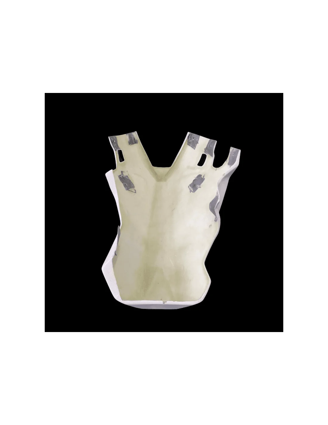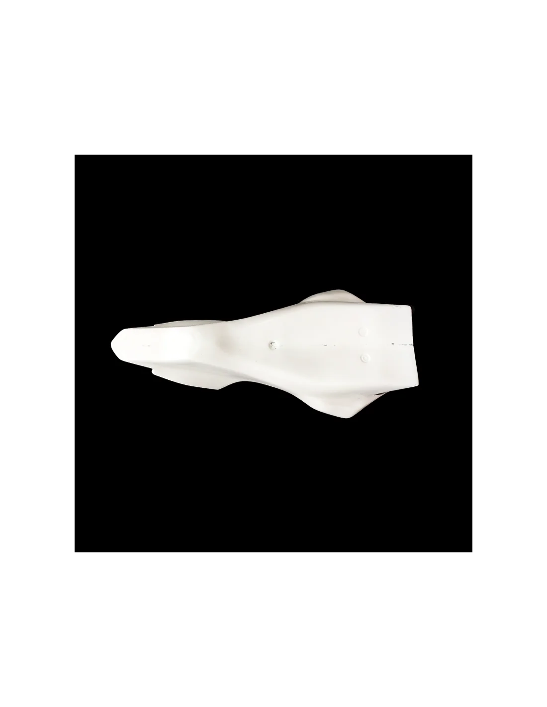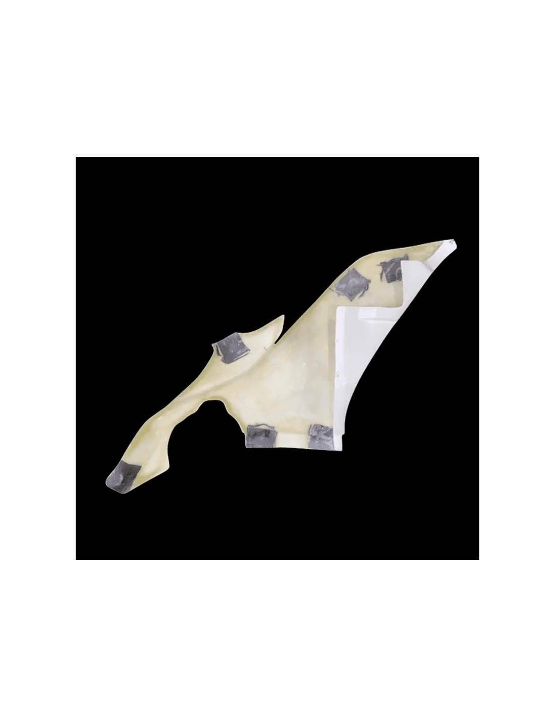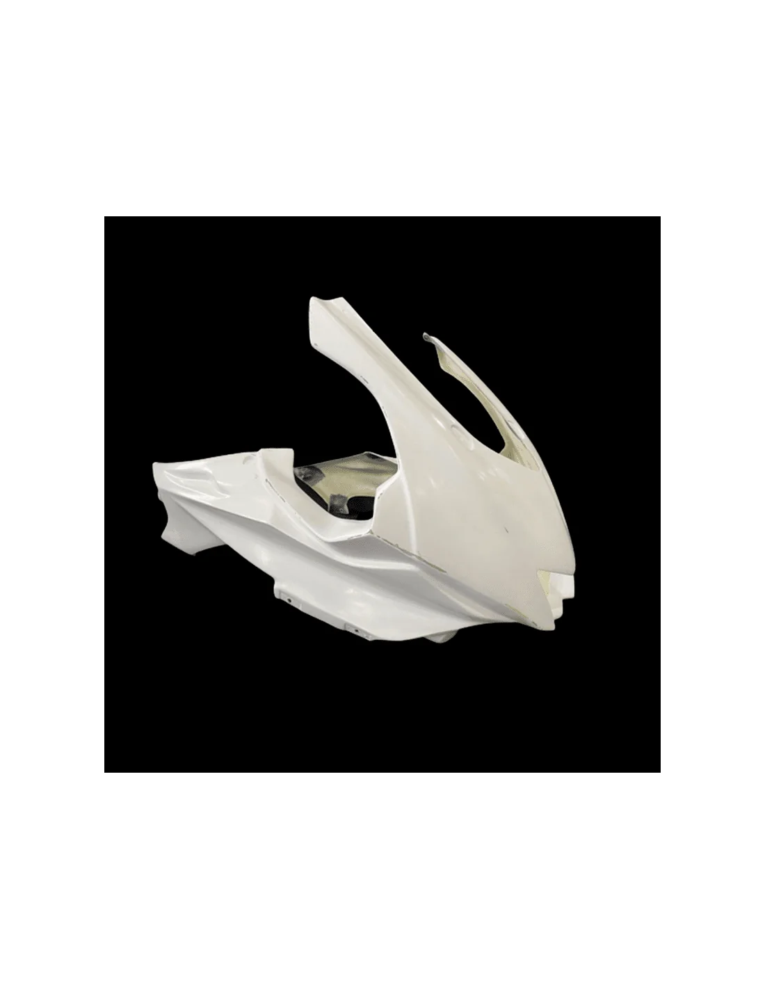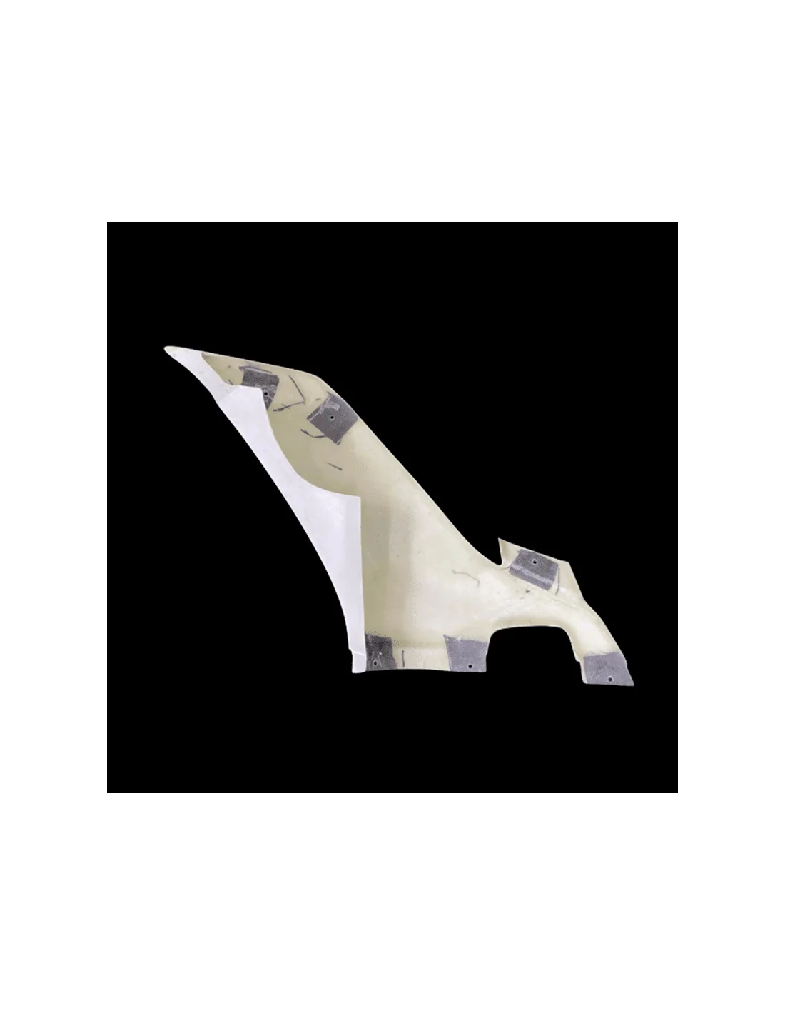 Fabricado en fibra de vidrio en color blanco. La zona de la tornillería va pre-marcada, lista para agujerear y reforzada con carbono - kevlar. Este refuerzo evita las roturas en las zonas más críticas del carenado, que son los puntos de anclaje.