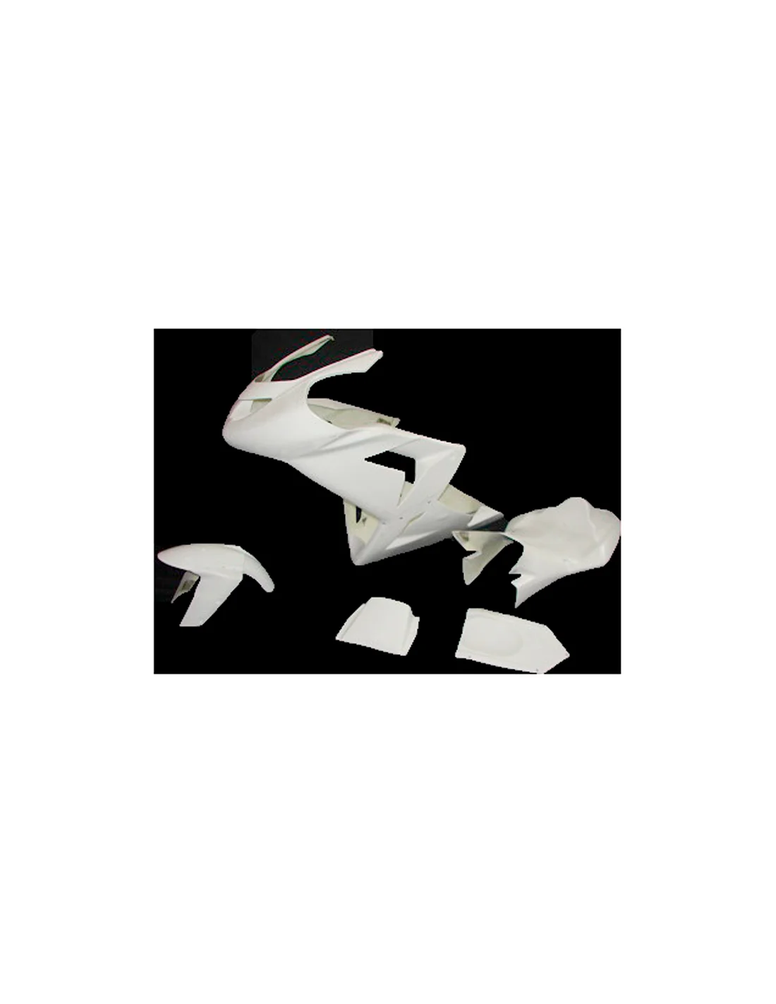 Carenado completo fabricado en fibra de vidrio y resina de poliéster para motos de competición. El kit viene preparado para su fácil montaje con tornillería Dzus y listo para pintar. Homologados por la FIM. El kit incluye: Frontal, Quilla, Laterales, Colín con asiento desmontable y canalizador de aire.