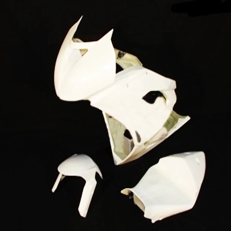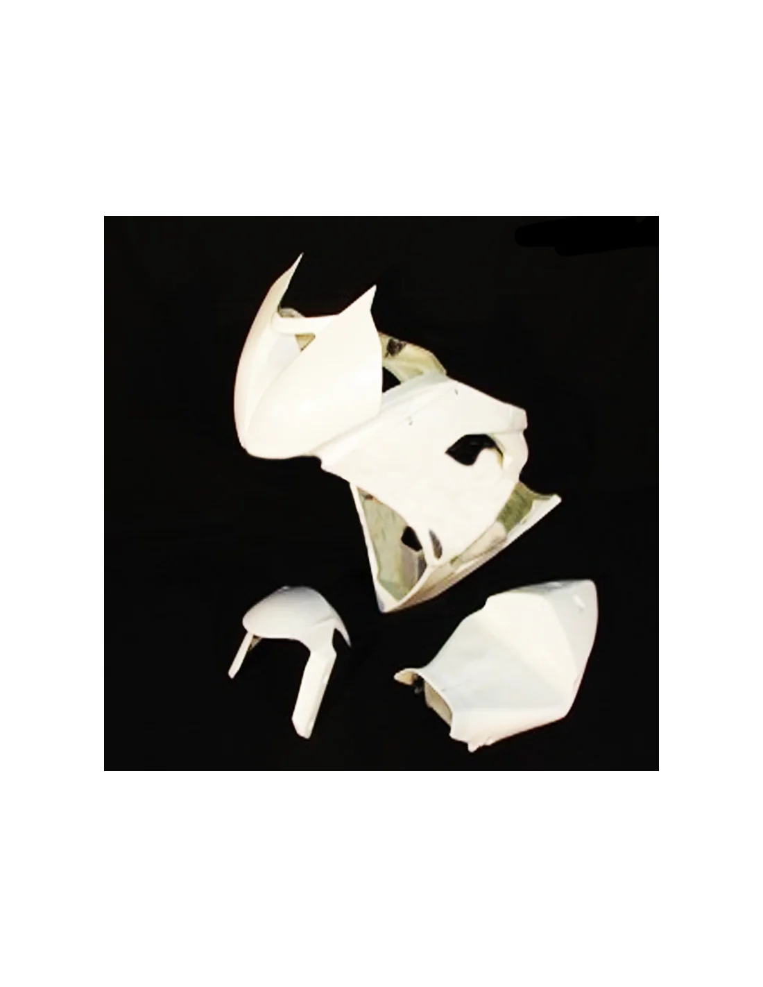 Carenado de competición para Kawasaki ZX6R, fabricados en fibra de vidrio en color blanco, con refuerzos de carbono - kevlar en la zona de la tornillería. El carenado está compuesto por frontal, quilla, guardabarros delantero, base del colín y colín. LEER DESCRIPCIÓN