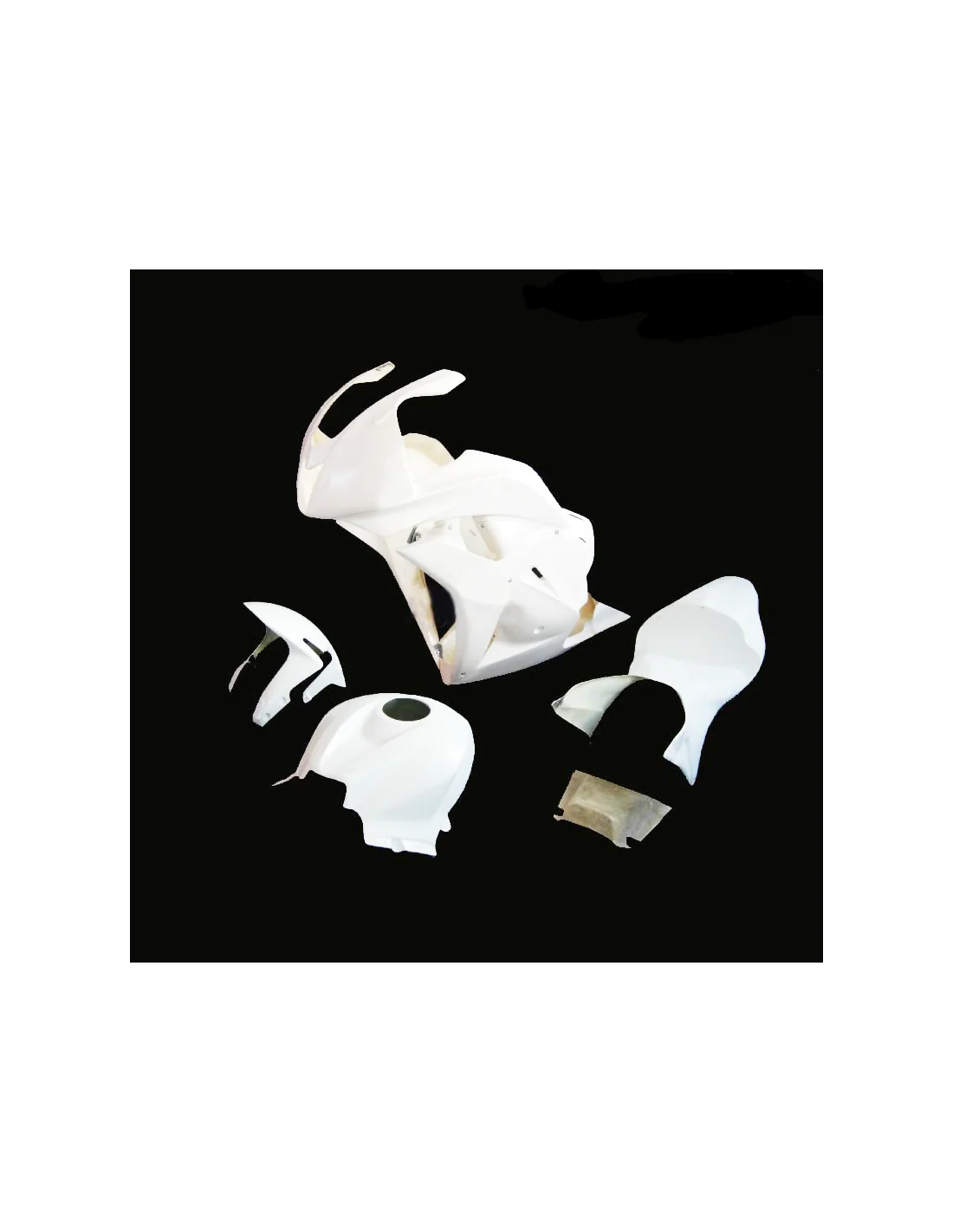 Carenado de competición para Honda CBR 600 RR, fabricados en fibra de vidrio en color blanco, con refuerzos de carbono - kevlar en la zona de la tornillería. El carenado está compuesto por frontal, quilla, guardabarros delantero, carcasa de depósito, colín y base de colín. LEER DESCRIPCIÓN