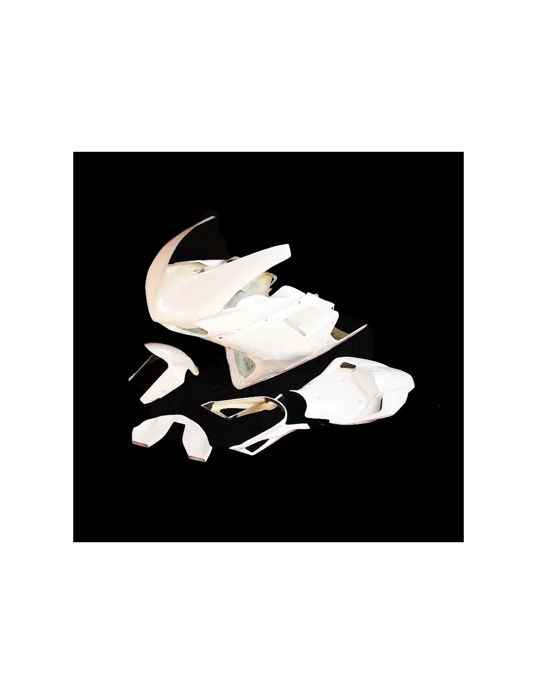Carenado de competición para DUCATI 848-1098, fabricados en fibra de vidrio en color blanco, con refuerzos de carbono - kevlar en la zona de la tornillería. El carenado está compuesto por frontal, entradas de aire, laterales, quilla, guardabarros delantero, tapa bajo depósito y colín. LEER DESCRIPCIÓN