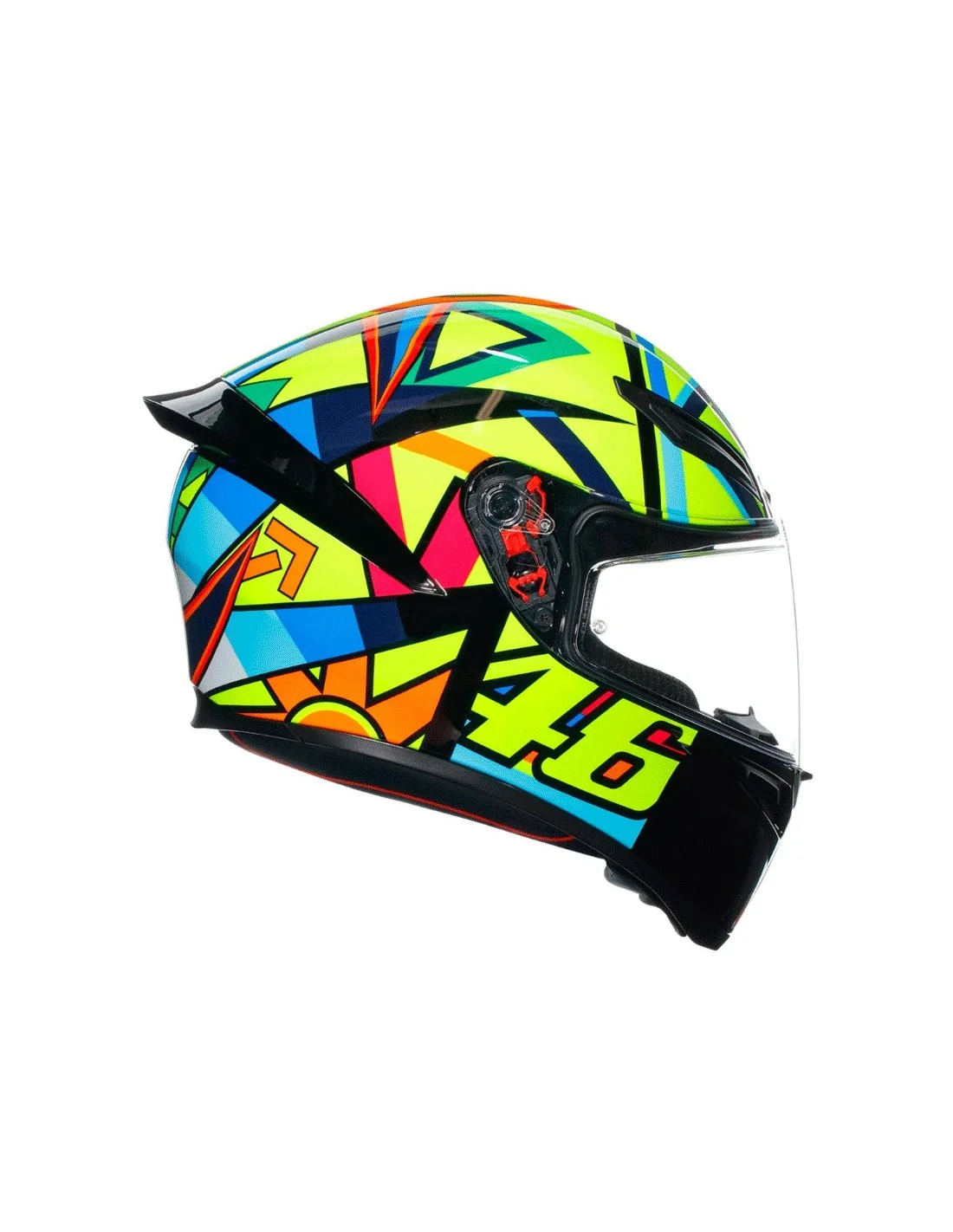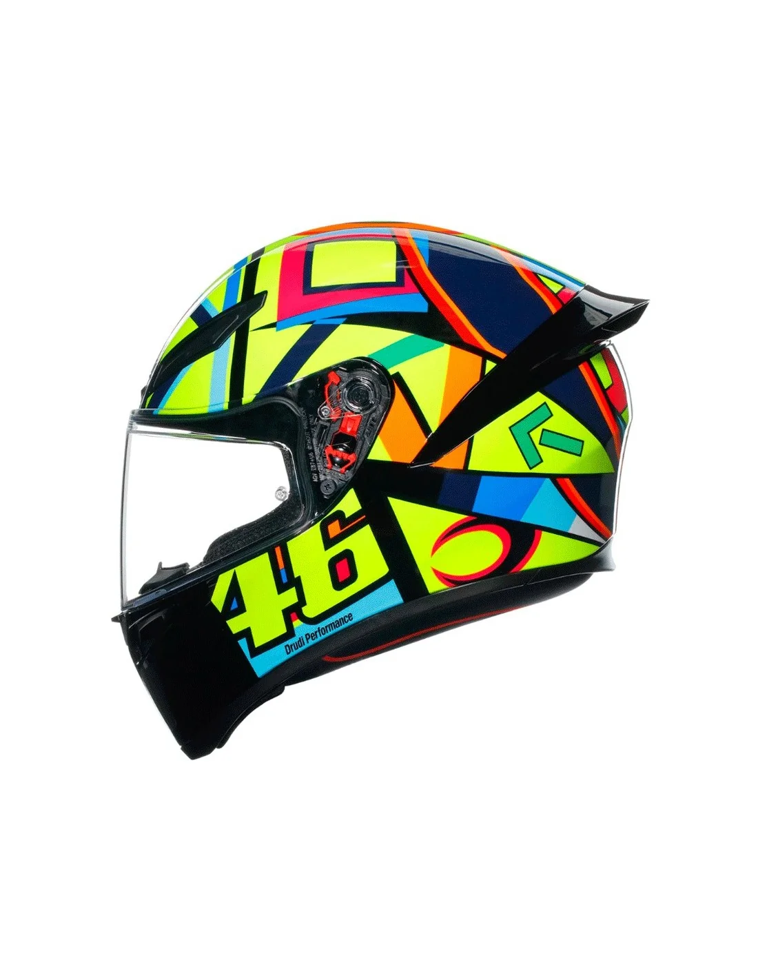 Casco AGV K-1 S Rossi Soleluna 2017. El K-1 S es el sucesor del K-1 homologado según la nueva normativa ECE 22.06. Aún tratándose de la gama más accesible de la marca, AGV ha aplicado en él sus tecnologías más avanzadas derivadas de MotoGP. Es el casco perfecto para aquellos que buscan un diseño deportivo y una buena relación calidad-precio. Es ideal para cualquier tipo de ruta en todo tipo de situaciones.
