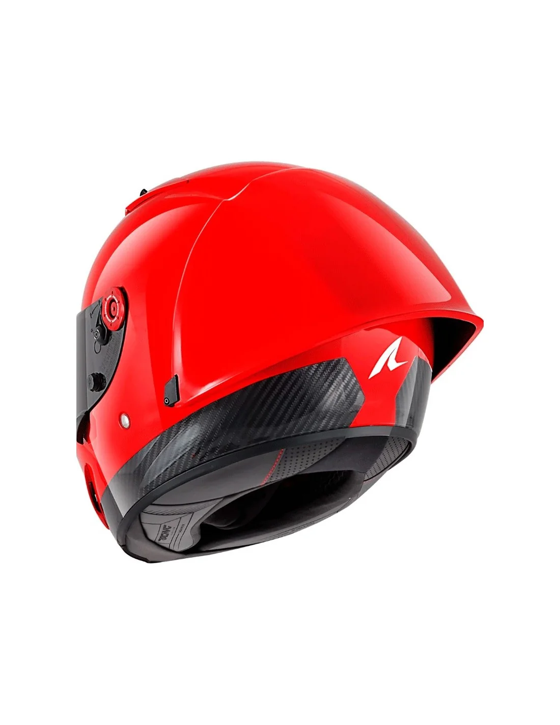 Casco Shark Race-R Pro GP 06 Rojo Carbono . Shark evoluciona su casco más deportivo y equipa el nuevo Race-R Pro GP 06 con la nueva normativa ECE 22.06. La calota exterior realizada con estructura COVA (fibra de carbono y aramida) ofrece un excelente rendimiento aerodinámico. ¡Tiene el récord de velocidad en MotoGP capturado a 363,6 km/h! Destaca el alerón trasero para mejorar el rendimiento aerodinámico y la estabilidad a alta velocidad. Este es el casco tope de gama, fruto de la experiencia de Shark en los más altos niveles de competición (MotoGP y SBK) con más de 250 podios.