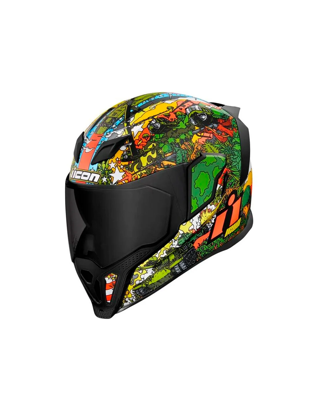 El ICON AIRFLITE destaca por su espectacular diseño, gracias a su pantalla que llega hasta la mentonera y sus llamativas gráficas. Diseñado para un uso sport-touring, el AIRFLITE está fabricado en policarbonato y su gran pantalla dispone de tratamiento anti-vaho y libre de distorsiones. Incorpora visor solar integrado y cierre de doble anilla, muy seguro. Dispone de certificación mundial DOT FMVSS 218 (EE. UU.), ECE 22-05 (Europa) y PSC (Japón).