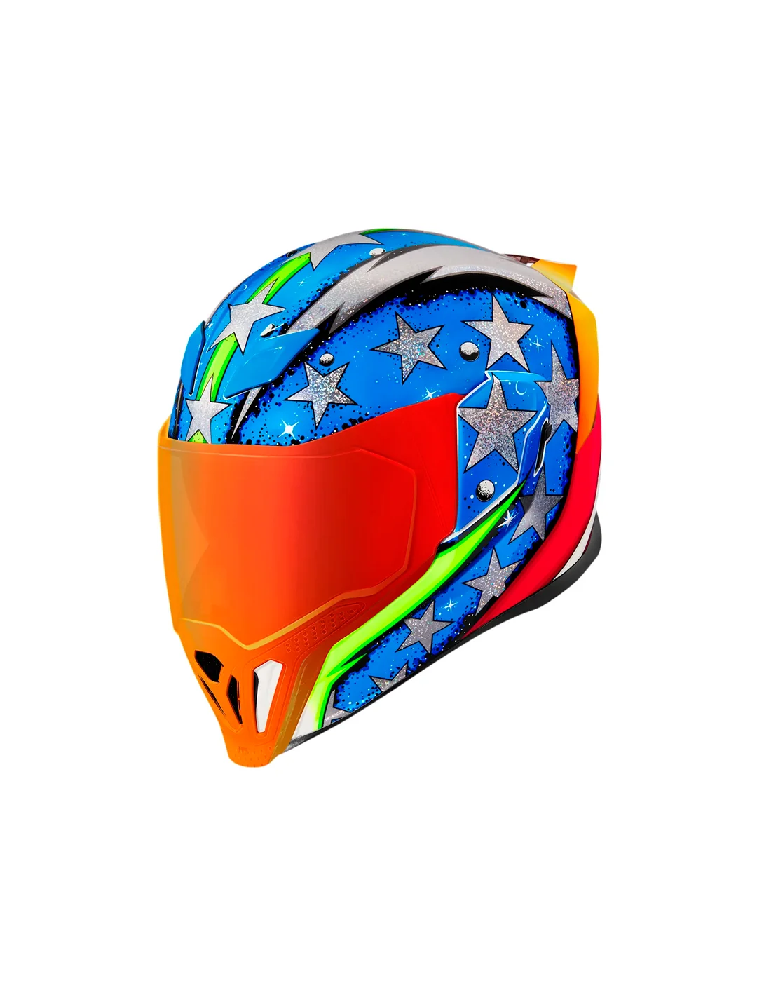 El ICON AIRFLITE destaca por su espectacular diseño, gracias a su pantalla que llega hasta la mentonera y sus llamativas gráficas. Diseñado para un uso sport-touring, el AIRFLITE está fabricado en policarbonato y su gran pantalla dispone de tratamiento anti-vaho y libre de distorsiones. Incorpora visor solar integrado y cierre de doble anilla, muy seguro. Dispone de certificación mundial DOT FMVSS 218 (EE. UU.), ECE 22-05 (Europa) y PSC (Japón).