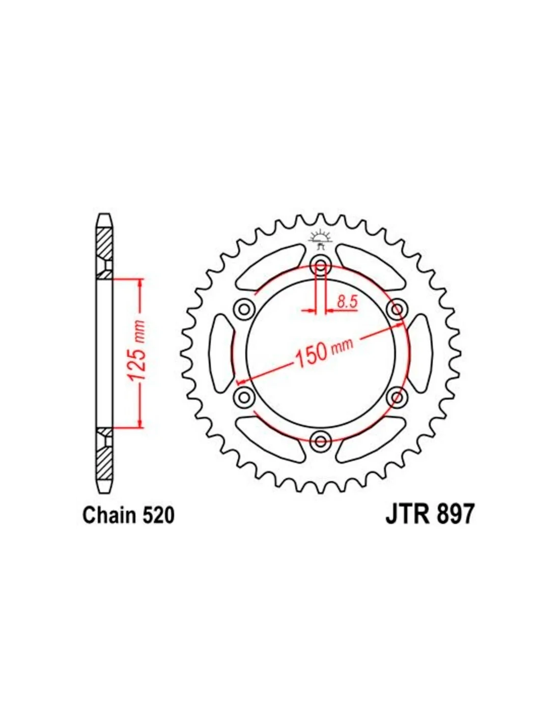 JT Sprockets Corona JT SPROCKETS acero estándar NEGRA JTR897 Paso 520