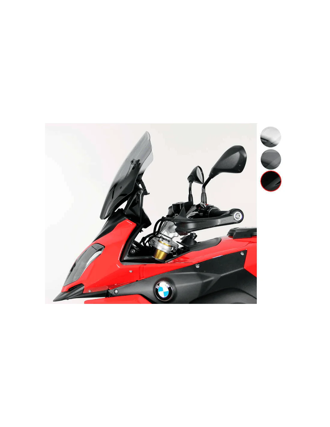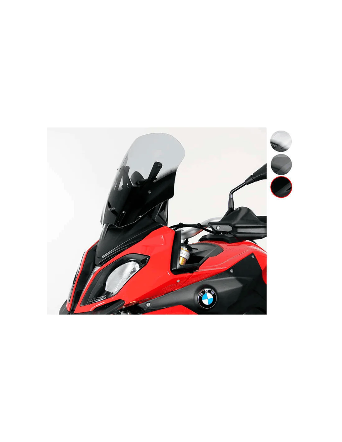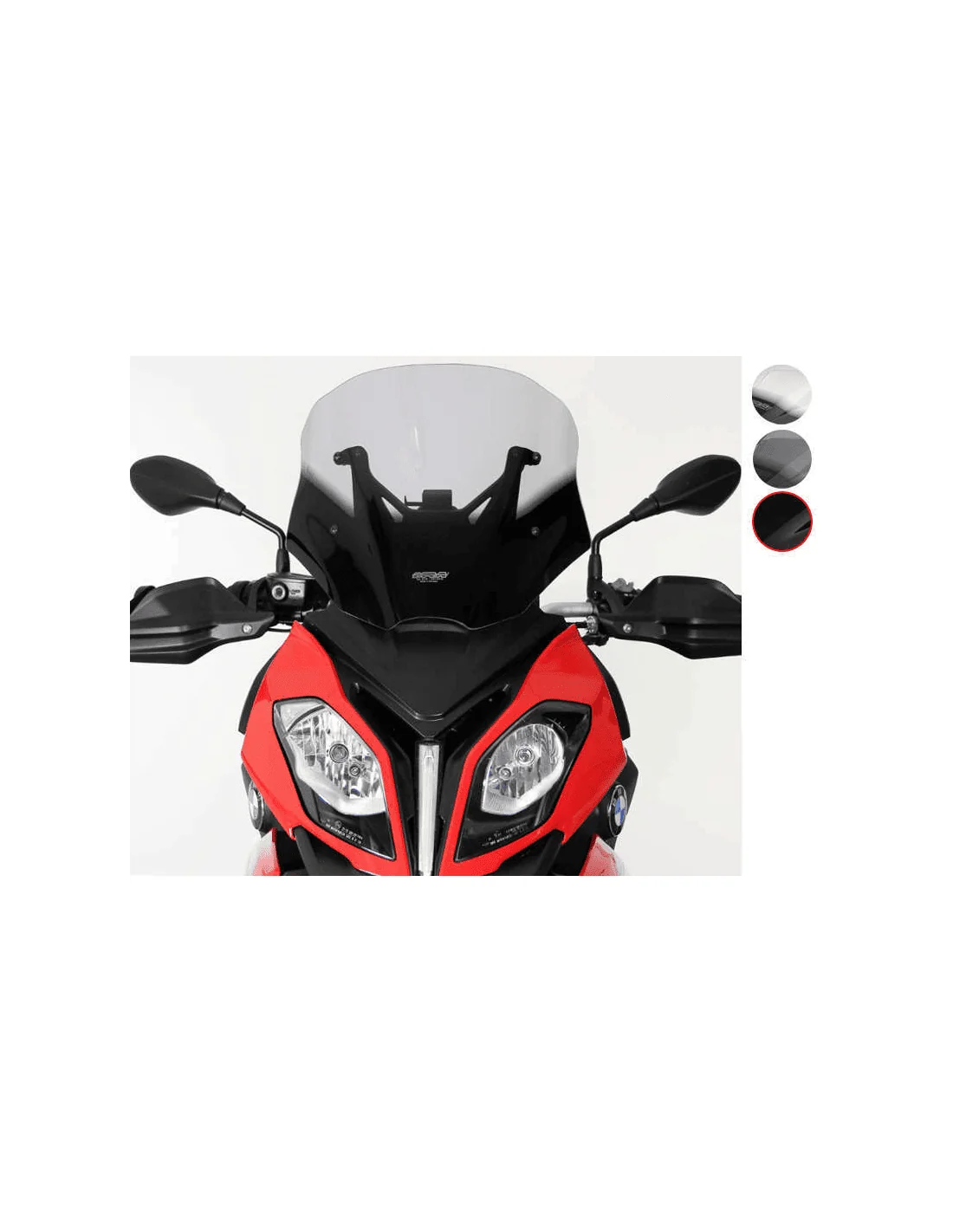Cúpula MRA con pantalla touring disponible en varios colores para una perfecta protección contra el viento para su montaje en BMW S 1000 XR 2015-2019, no pierde nada de su dinámica. Para este BMW, MRA ofrece tres pantallas diferentes: La cúpula Touring (TM) con una longitud total de 44 cm es 2 cm más larga que la cúpula original y ofrece una buena protección contra el viento también en recorridos más largos. El parabrisas touring está disponible en transparente, gris ahumado y negro.