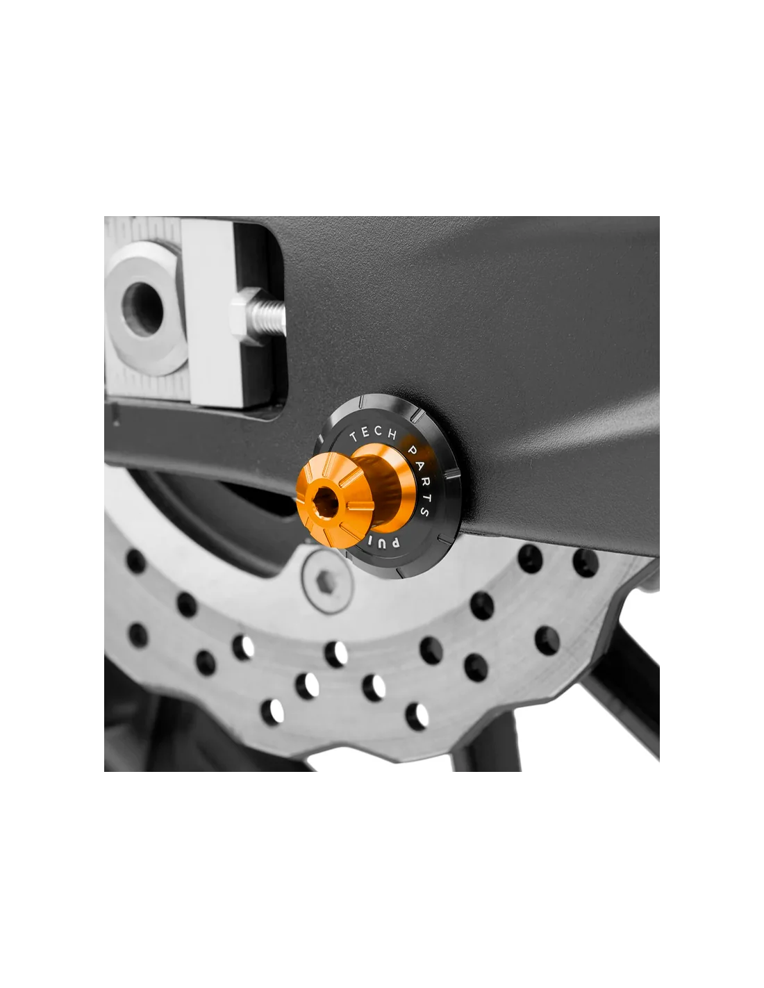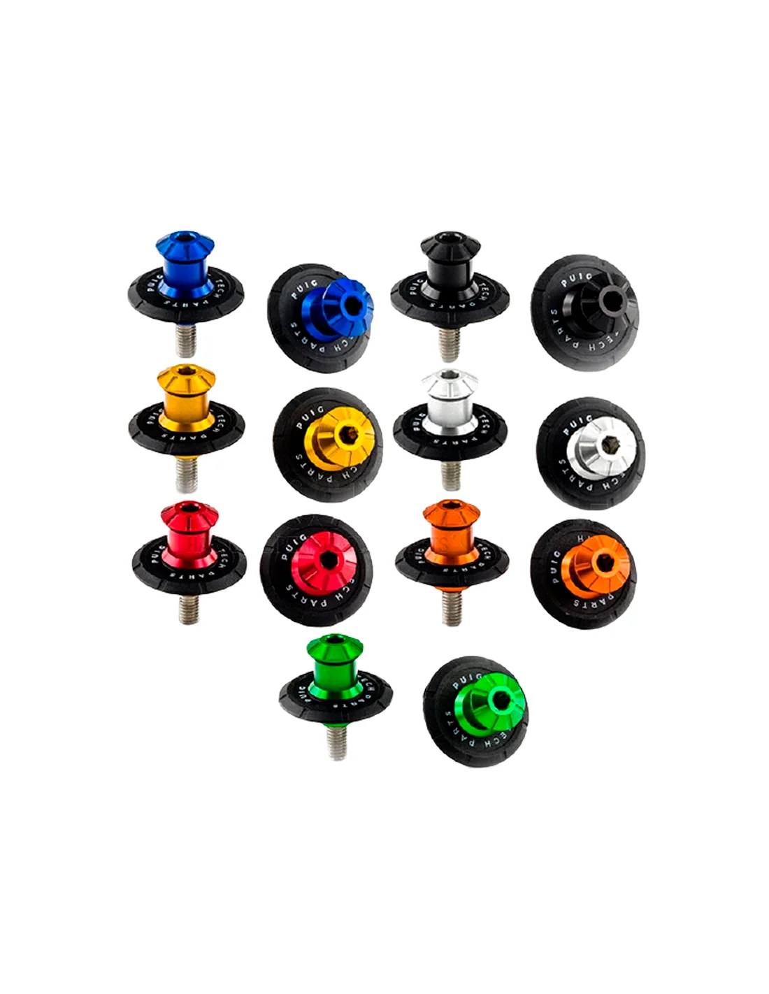 Los diábolos sirven como guía de encaje con el caballete para subir tu moto de manera fácil, rápida y segura. En este caso, os presentamos el Diábolo Pro de Puig. Fabricado a partir de una masa de aluminio fresada y anodizada (peso reducido de 32 gr), garantizará la protección del basculante de posibles rasguños gracias a que viene acompañado de una arandela de nylon de color negro con la serigrafía Puig Hi-Tech Parts. Para facilitar su montaje, la guía de encaje del diábolo y su rosca están mecanizados en un mismo bloque. Cabe tener en cuenta que los Diábolos Pro se sirven en pareja y a pesar de que las referencias encajan con la gran mayoría de motos, deben verificarse previamente las medidas de la pieza y del paso de rosca.
