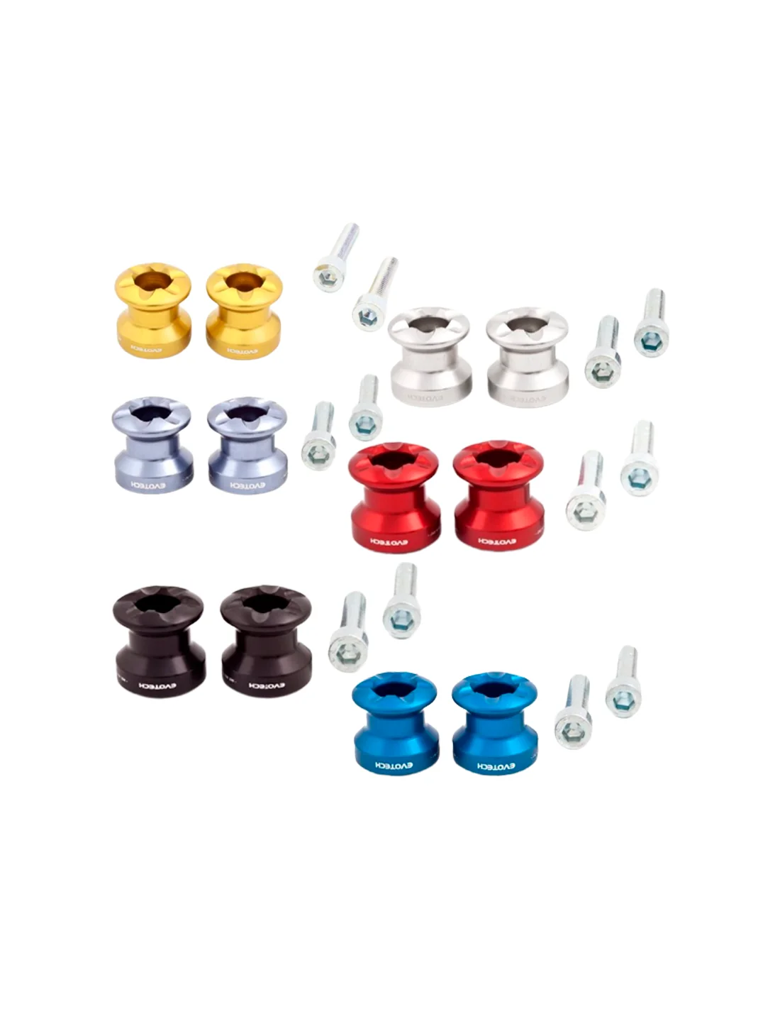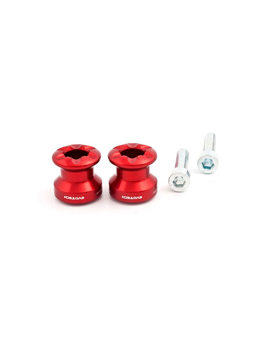 Diábolos para caballete trasero Evotech con paso de rosca de 6mm en color Rojo. Diábolo para caballete rápido. Kit de 2 diábolos soportes para caballete de marca Evotech en M6 en varios colores