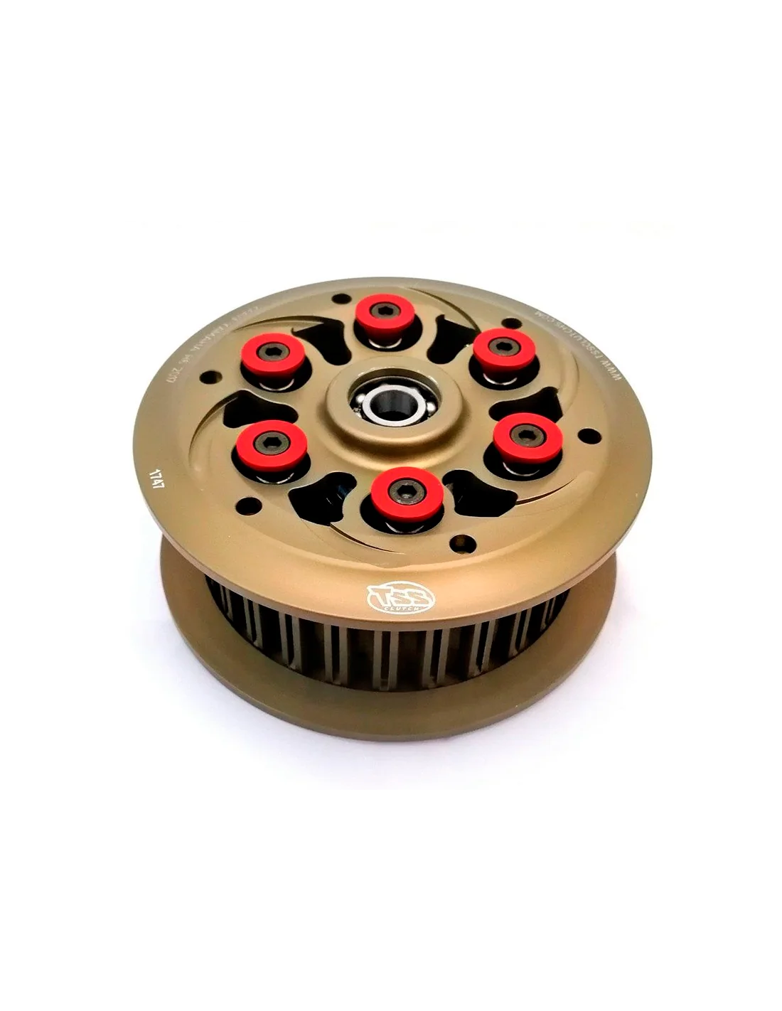 El embrague antirrebote estándar funciona bien en carretera, pero en carreras de pista se requiere un grupo específico para compensar con mayor reactividad, los efectos del frenado extremo, cambios de marcha rápidos, mayor velocidad en las curvas y cualquier modificación del motor, como mayor compresión. . Por lo tanto, se requiere una acción deslizante más efectiva, una respuesta más rápida y un nuevo acoplamiento menos abrupto. El embrague TSS tiene rampas más suaves y un funcionamiento más suave. Gracias a la posibilidad de elegir el número de muelles secundarios o el diseño de las copas de retención de los muelles, el piloto puede ajustar el funcionamiento de la unidad en detalle para adaptarse mejor a su estilo de conducción y a las condiciones de la pista. Además, la ventaja de peso es significativa, con ahorro de energía rotativa y efecto giroscópico, con el efecto de una mejor respuesta del motor. El grupo está fabricado en Ergal 7075.