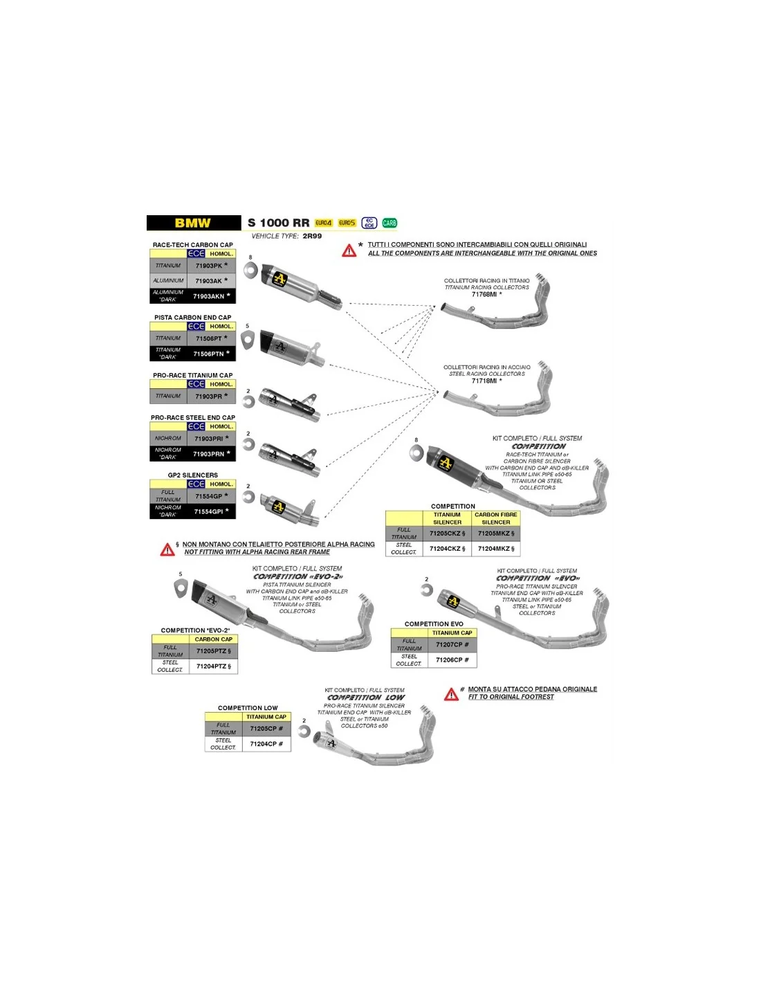 ESCAPE COMPLETO COMPETICION LOW PRO-RACE NO HOMOLOGADO FULL TITANIO CON COLECTOR EN ACERO PARA BMW S 1000 RR 19-22