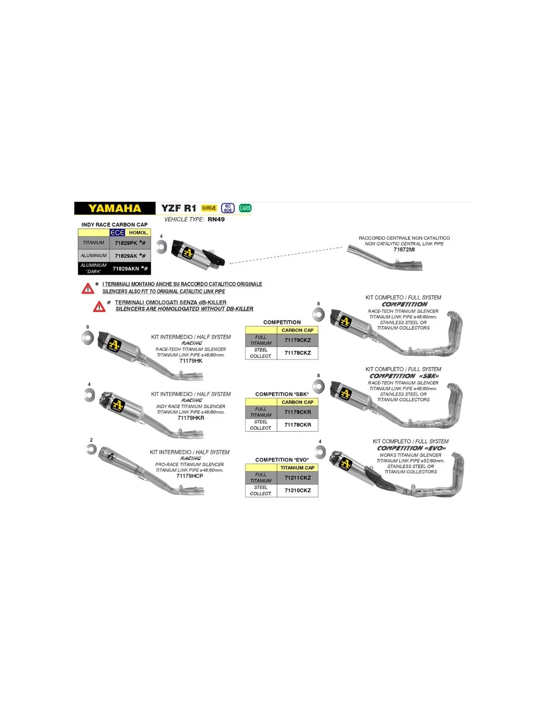 ESCAPE COMPLETO ARROW COMPETICION EVO-2 EN TITANIO CON COLECTORES EN ACERO INOX. PARA YAMAHA YZF R1 17-23