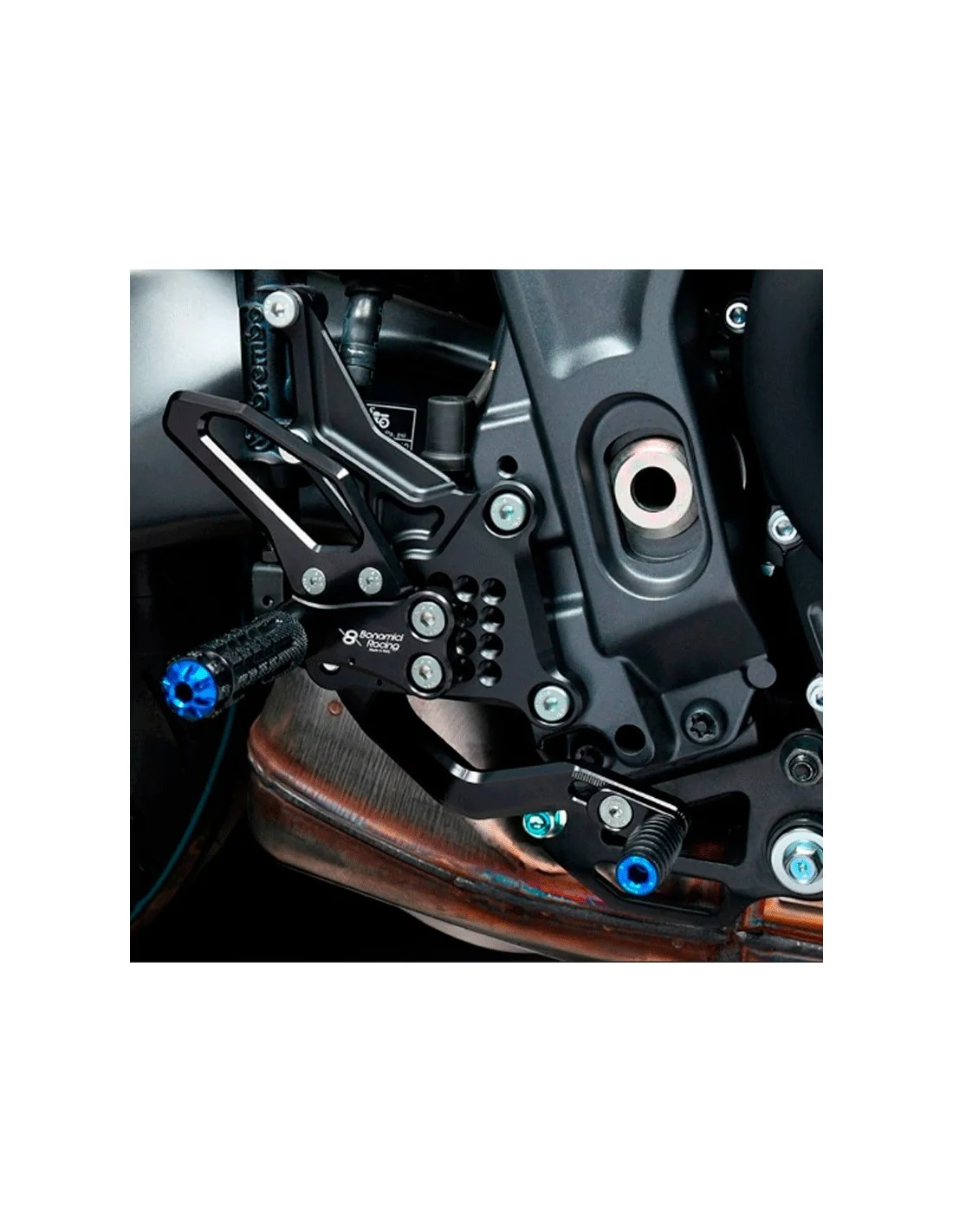 Los detalles Bonamici Racing están fabricados en aluminio aeronáutico y acabados con un tratamiento de anodizado duro para aumentar las características superficiales, tanto técnicas como estéticas, mejorando la resistencia y la belleza.