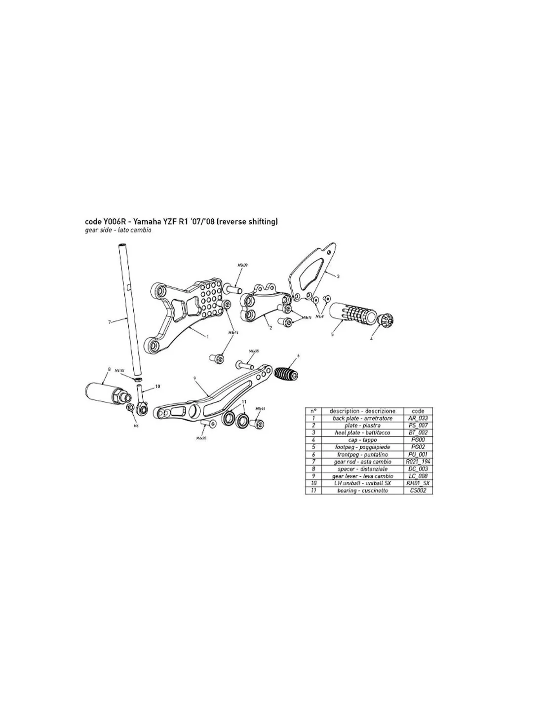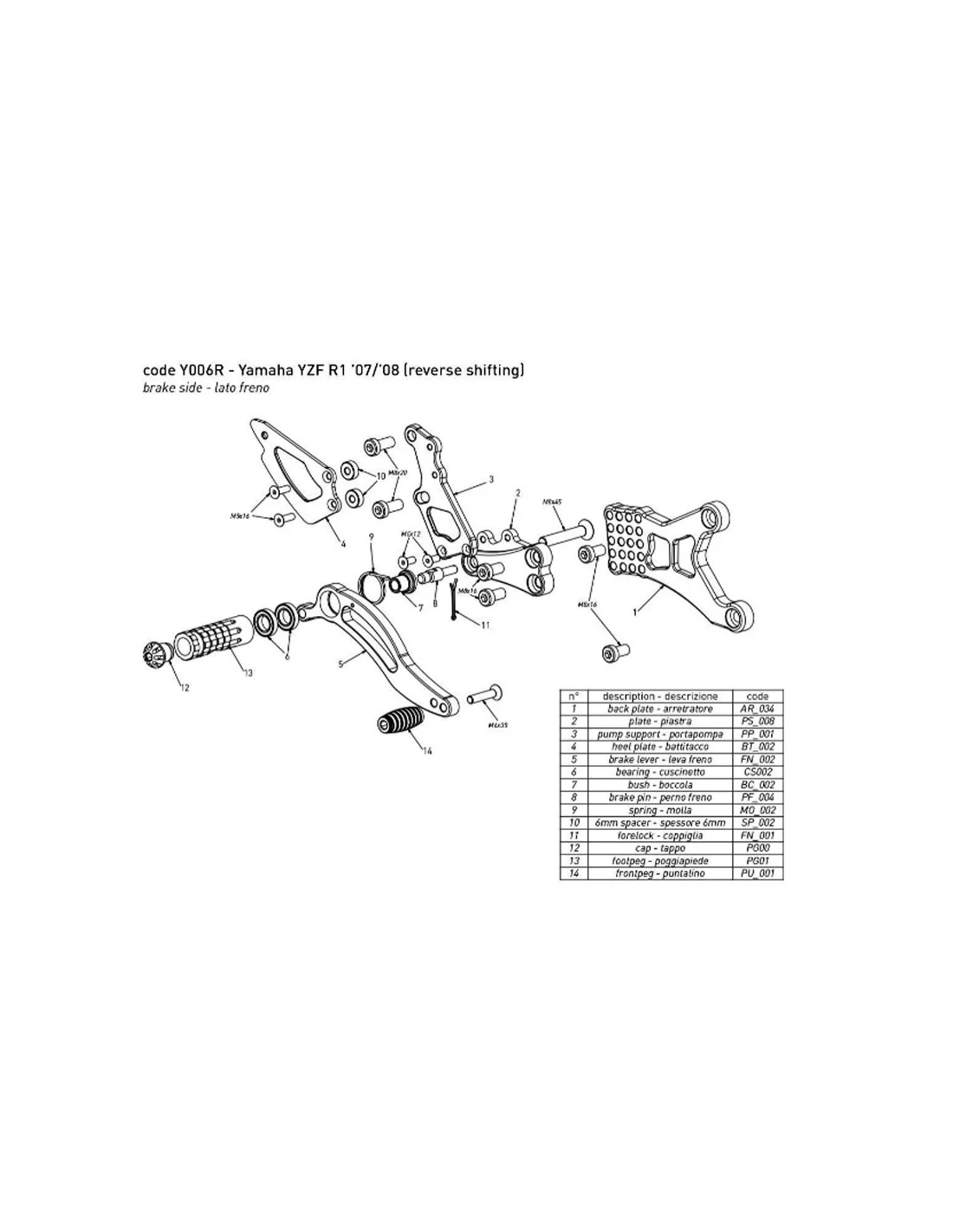 Estriberas ACCOSSATO para YAMAHA YZF-R1 15-16 Racing ESTANDAR Y RETROCESO